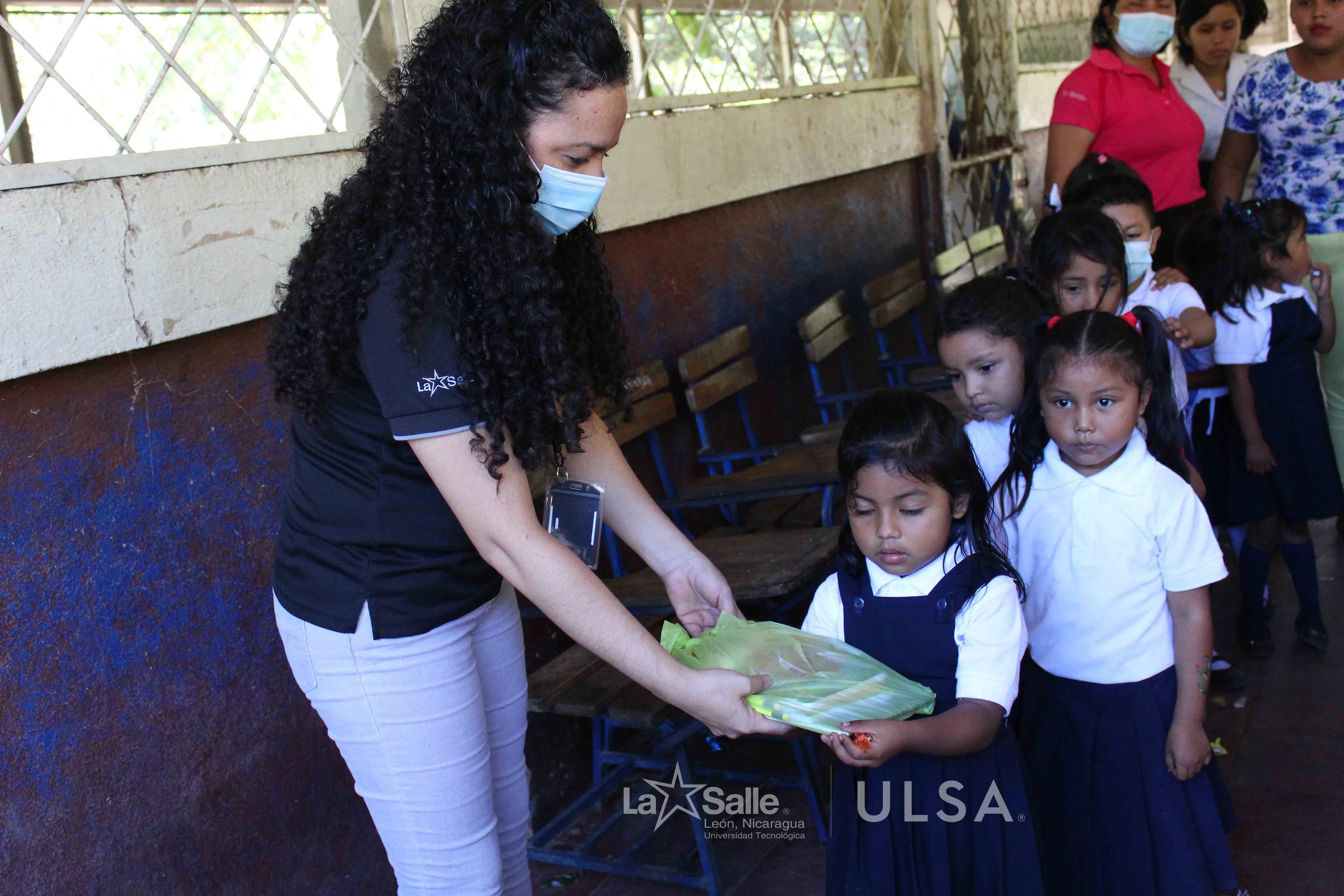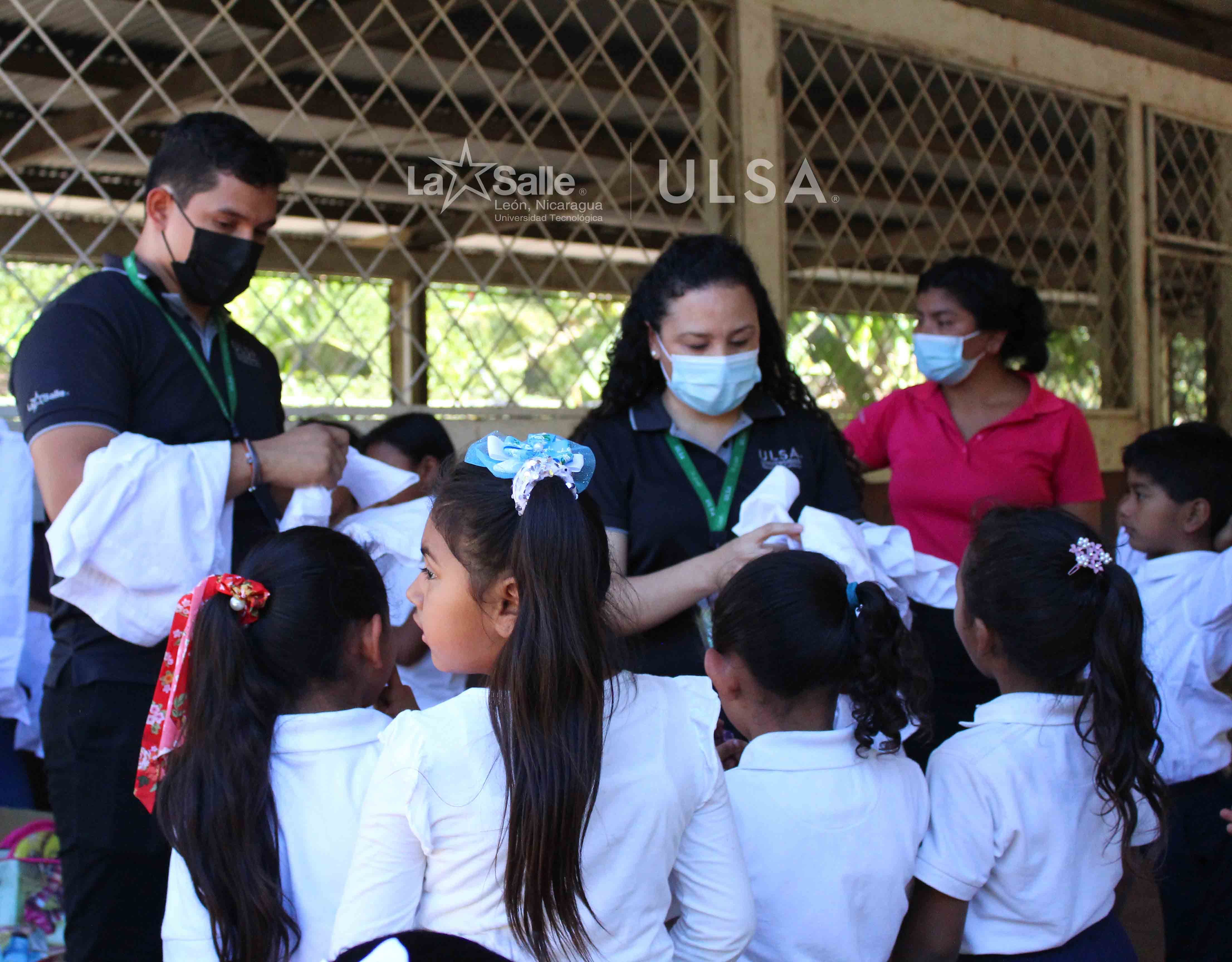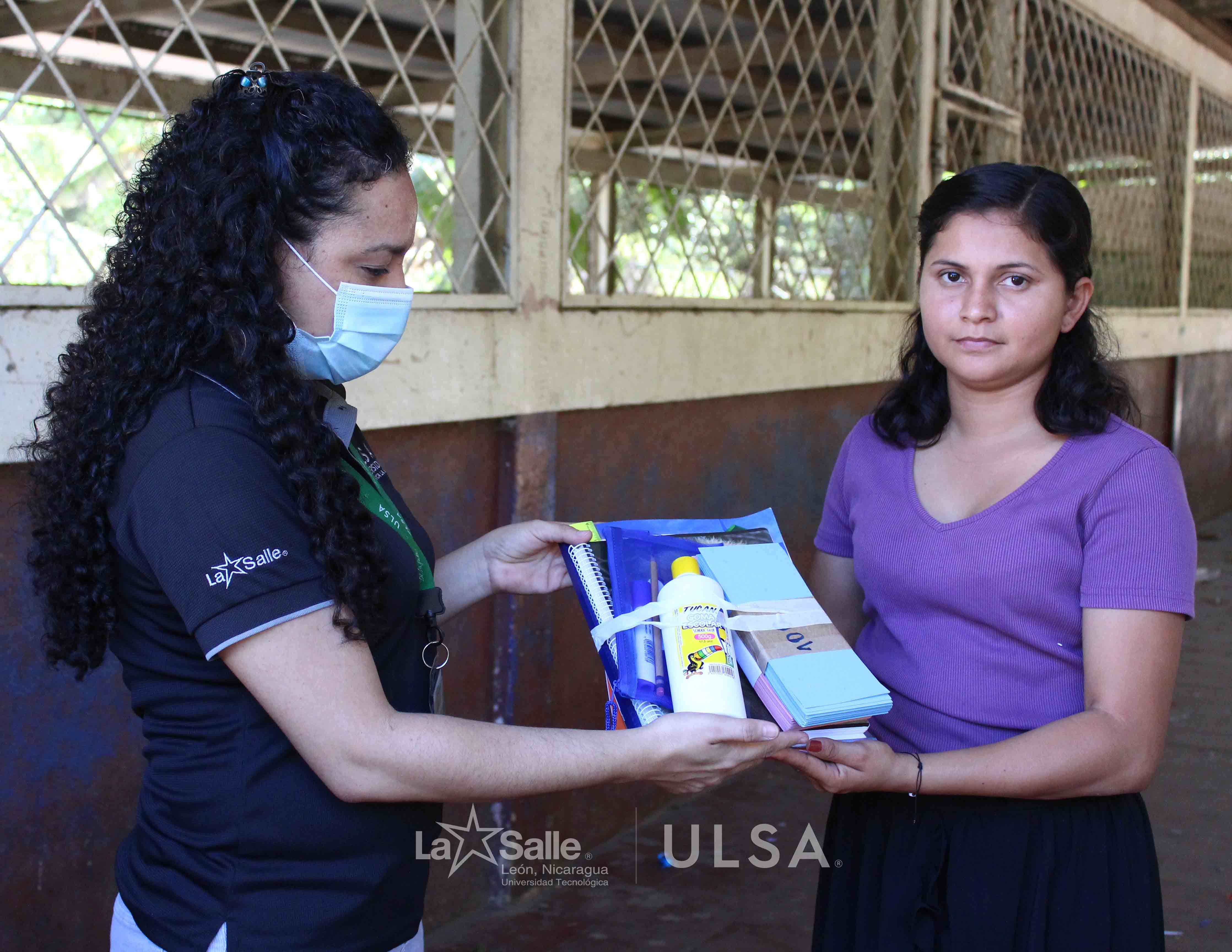 Entrega de útiles escolares en el colegio Roger Morales de Abangasca Sur como parte de la campaña de ULSA "Lasallistas comprometidos con la educación".