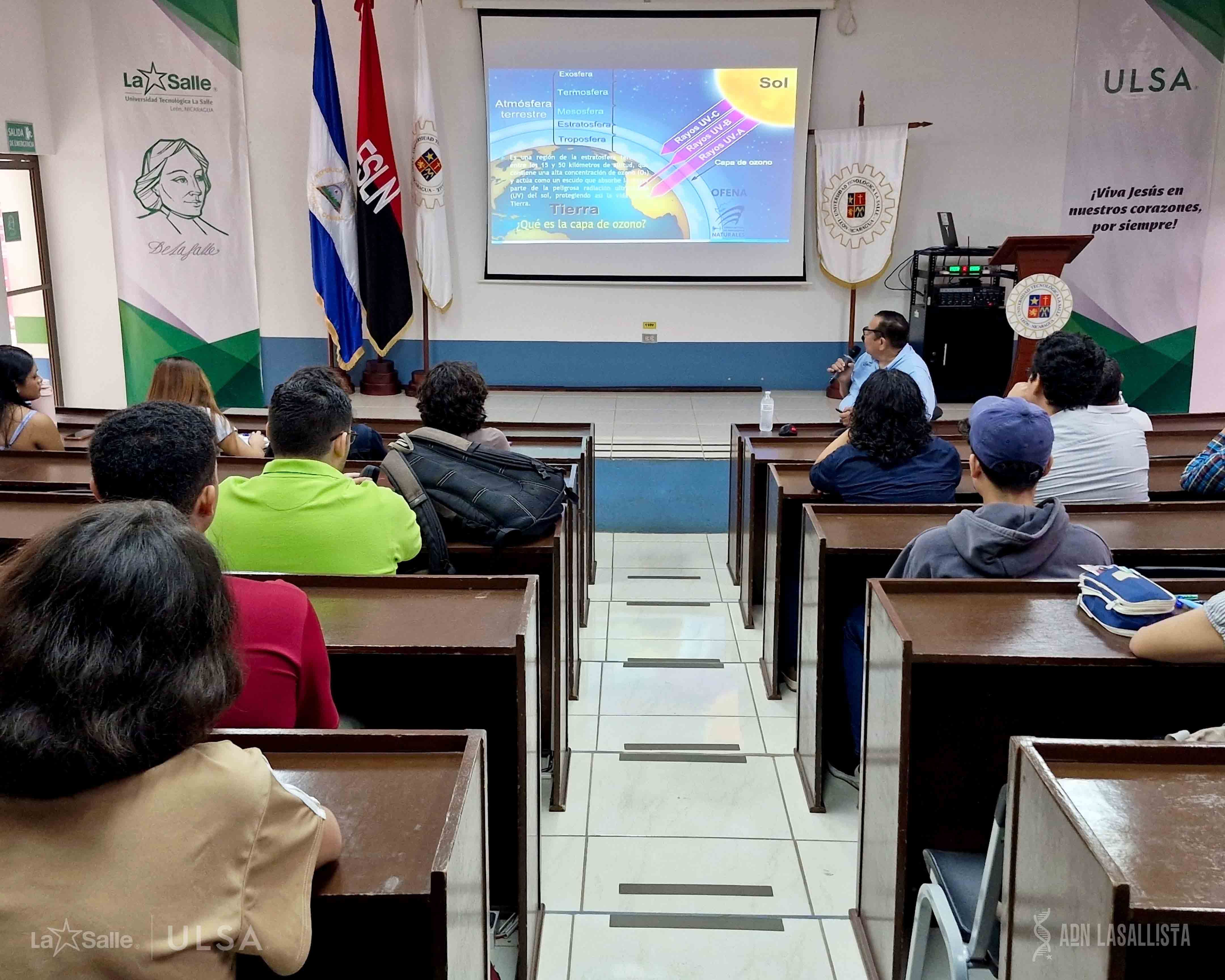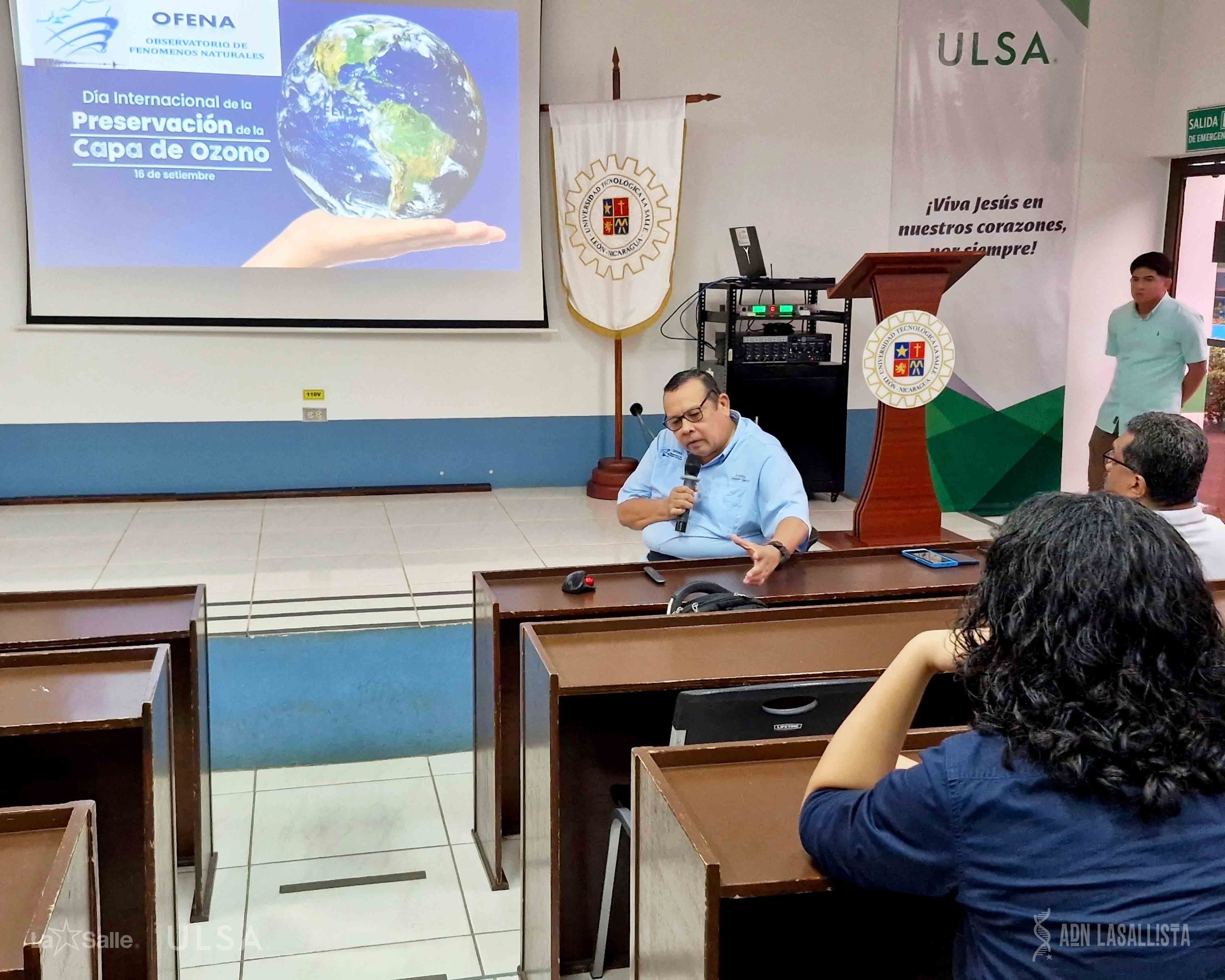 El 19 de septiembre, la Universidad Tecnológica La Salle (ULSA) llevó a cabo el Taller sobre la Capa de Ozono, impartido por el Ing. Agustín Moreira, gerente del Observatorio de Fenómenos Naturales (OFENA). El objetivo del taller fue sensibilizar a los estudiantes sobre la importancia de la capa de ozono en el equilibrio climático y fomentar la reflexión sobre su deterioro, sus causas y consecuencias.