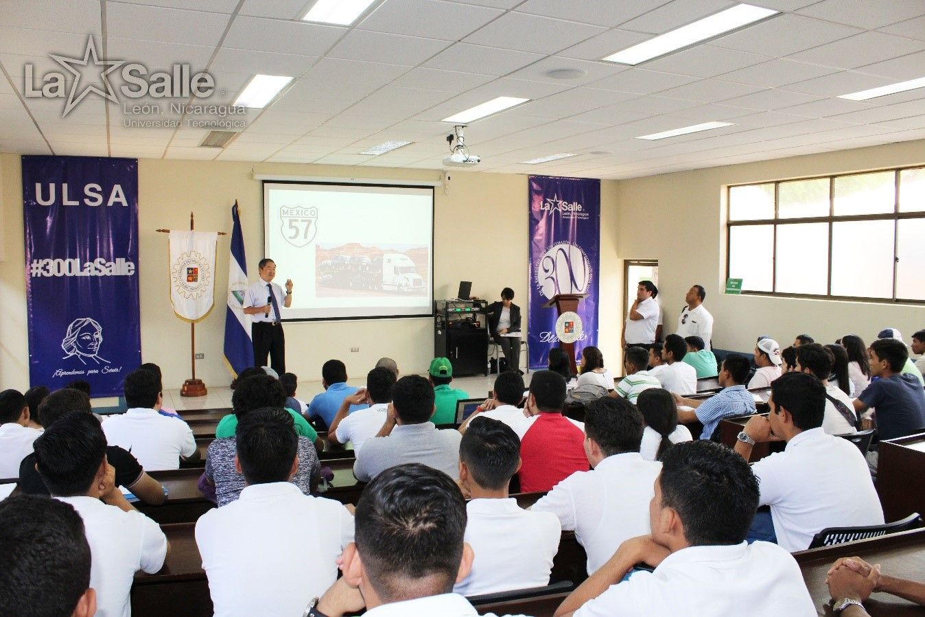 La comunidad educativa de ULSA recibió el pasado miércoles 20 de marzo la ilustre visita del embajador de Japón el diplomático Yasuhisa Suzuki quien recientemente ha regresado a Nicaragua como Embajador Extraordinario y Plenipotenciario, después de haber estado en nuestra hermosa tierra en 1998 posterior al desastre natural del Huracán Mitch. El embajador Suzuki tiene una variada y brillante formación, graduado de la Universidad de Estudios Extranjeros de Tokio, Facultad de Estudios Extranjeros (español). Tiene estudios de Teoría Económica Internacional y Derecho durante dos años en la Universidad de Zaragoza, España. Entre los objetivos de la visita estaba el compartir a través de una charla “La Historia de la Industria Automotriz en Japón” dirigida a estudiantes finalistas de Ingeniería en Mecánica y Energía Renovables, Ingeniería en Mecatrónica y Sistemas de Control e Ingeniería en Gestión Industrial de la Universidad Tecnológica La Salle, así como a estudiantes de 5to. Año de Técnico Medio en Mecánica Automotriz del Instituto Politécnico La Salle, dicha charla se desarrolló en el auditorio de ULSA bajo la dirección de la Vicerrectoría Académica. La temática desarrollada se basó en la evolución tecnológica y eficiente de la industria automotriz, la cual ha venido diversificando y aplicando el uso de fuentes de energía para los automóviles que va desde gas natural, electricidad, hidrógeno y la energía solar, los cuales emiten un cuarto de los gases tóxicos emitidos por los automóviles convencionales a bases de combustibles fósiles. Esta grata visita ha contribuido a que nuestros estudiantes se encuentren en permanente evolución de sus competencias y conocimientos, capacitándose a lo largo de su formación universitaria y técnica. En la visita se propició el espacio para que el embajador Suzuki conociera el equipamiento y proyectos existentes en el Laboratorio de Energías Renovables y Redes Inteligentes (EcoLAB) de ULSA, así como la presentación de iniciativas de desarrollo de software que se impulsa desde el Centro de Negocios con Recursos Naturales y Energías Renovables (CENRENER) que forma parte de los programas y extensiones de ULSA. |