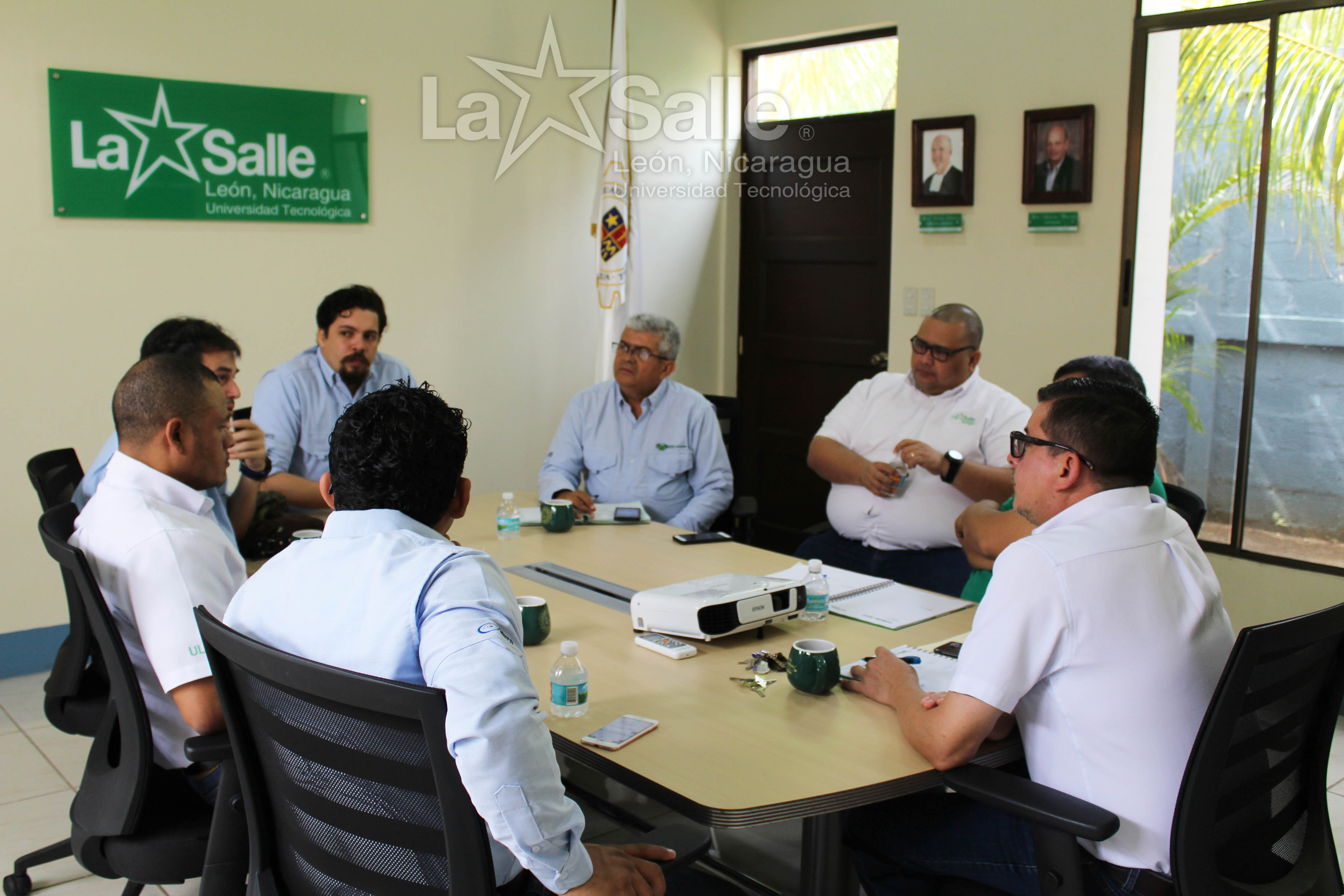 El día martes 07 de mayo en la Sala de Juntas de la Universidad Tecnológica La Salle, la delegación de la empresa SER San Antonio y la delegación de esta universidad intercambiaron criterios técnicos para dar inicio a las actividades que estipula el Convenio de Cooperación Técnica entre ambas instituciones para procurar el desarrollo de mejoras en las aplicaciones tecnológicas para los procesos productivos e impulsar de forma pertinente la investigación aplicada. El convenio fue establecido con el objetivo de compartir los conocimientos técnicos del que disponen ambas instituciones para lograr un proceso de intercambio con fines académicos y tecnológicos. Es importante resaltar que en la delegación de SER San Antonio, uno de sus integrantes y encargado del área de Inteligencia Electrónica es un egresado de nuestra universidad, de la Ingeniería en Cibernética Electrónica. De la delegación de la ULSA estuvieron presentes: el ingeniero Óscar Silva como Encargado de Proyectos en Energías Renovables, el MBA Alden Jirón Coordinador del “CENRENER” Centro de Negocios con Recursos Naturales y Energías Renovables”, el licenciado Norman Reyes Vicerrector Académico y el Hermano Manuel Orozco, rector de la ULSA. De la delegación de SER San Antonio se presentaron Ing. Emerson Martínez, Ing. José Cano, Ing. Gustavo Robleto e Ing. Fausto Amador, egresado de ULSA. |
