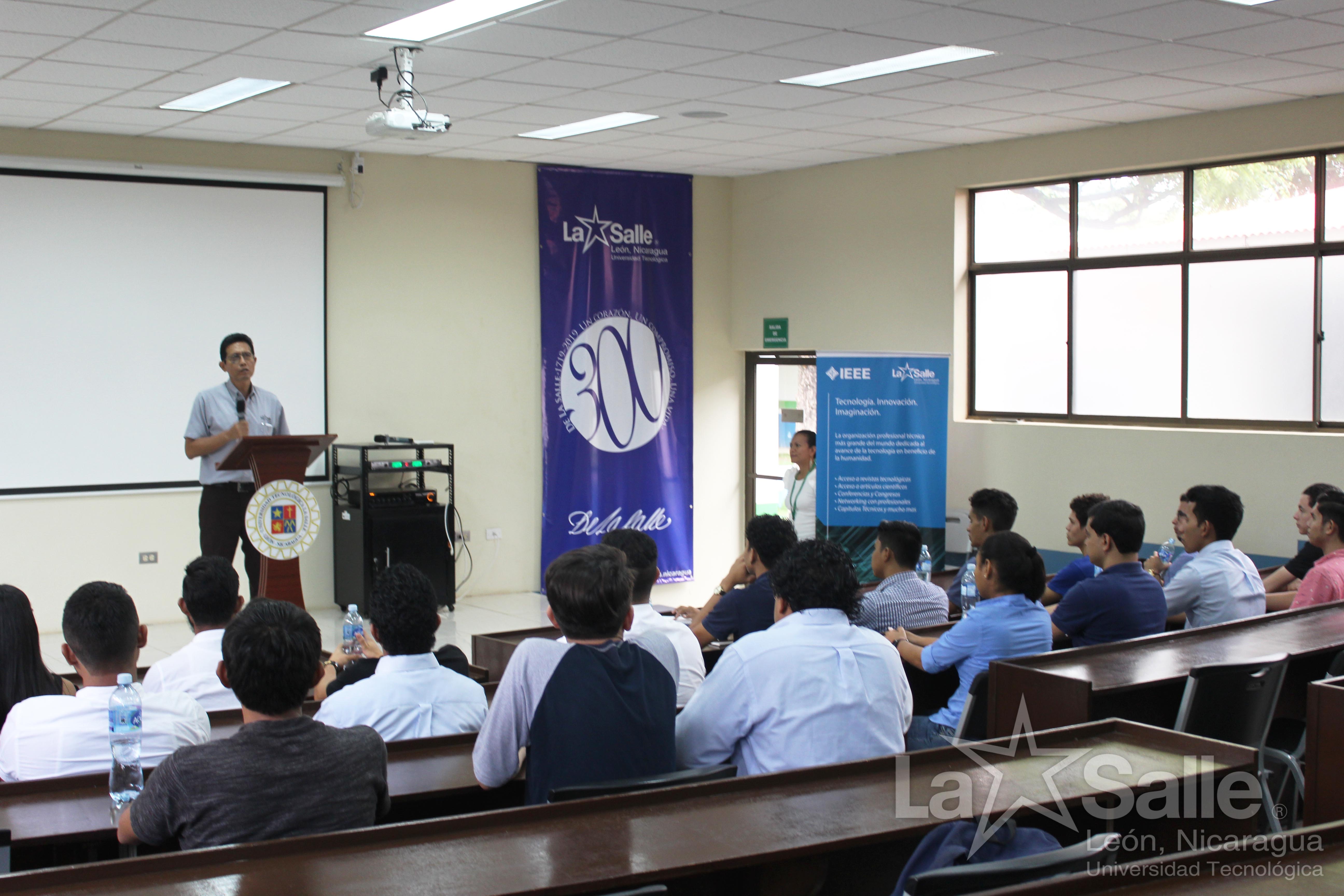 El día viernes 2 de agosto ULSA recibió la visita técnica de la Rama Estudiantil IEEE de UNI y UCA, la visita consistió en compartir con los estudiantes de la Rama Estudiantiles los laboratorios, equipos y medios didácticos con los que cuenta ULSA, como parte de su capacidad instalada en sus diferentes carreras universitarias. La agenda dio inicio con las palabras de bienvenida brindadas por el Ing. Benito Núñez, Decano de ULSA, posterior se presentó a los integrantes de la Rama ULSA, cerrando la primera etapa de la agenda con la entrega de reconocimiento al presidente de la Rama Estudiantil IEEE de UNI Br. Brayan Álvarez por el estudiante finalista de Ingeniería en Mecatrónica y Sistema de Control y actual presidente de la Rama Estudiantil IEEE de ULSA Br. Harley Lara. Como segunda parte de la agenda se realizaron los recorridos en dos grupos para conocer: