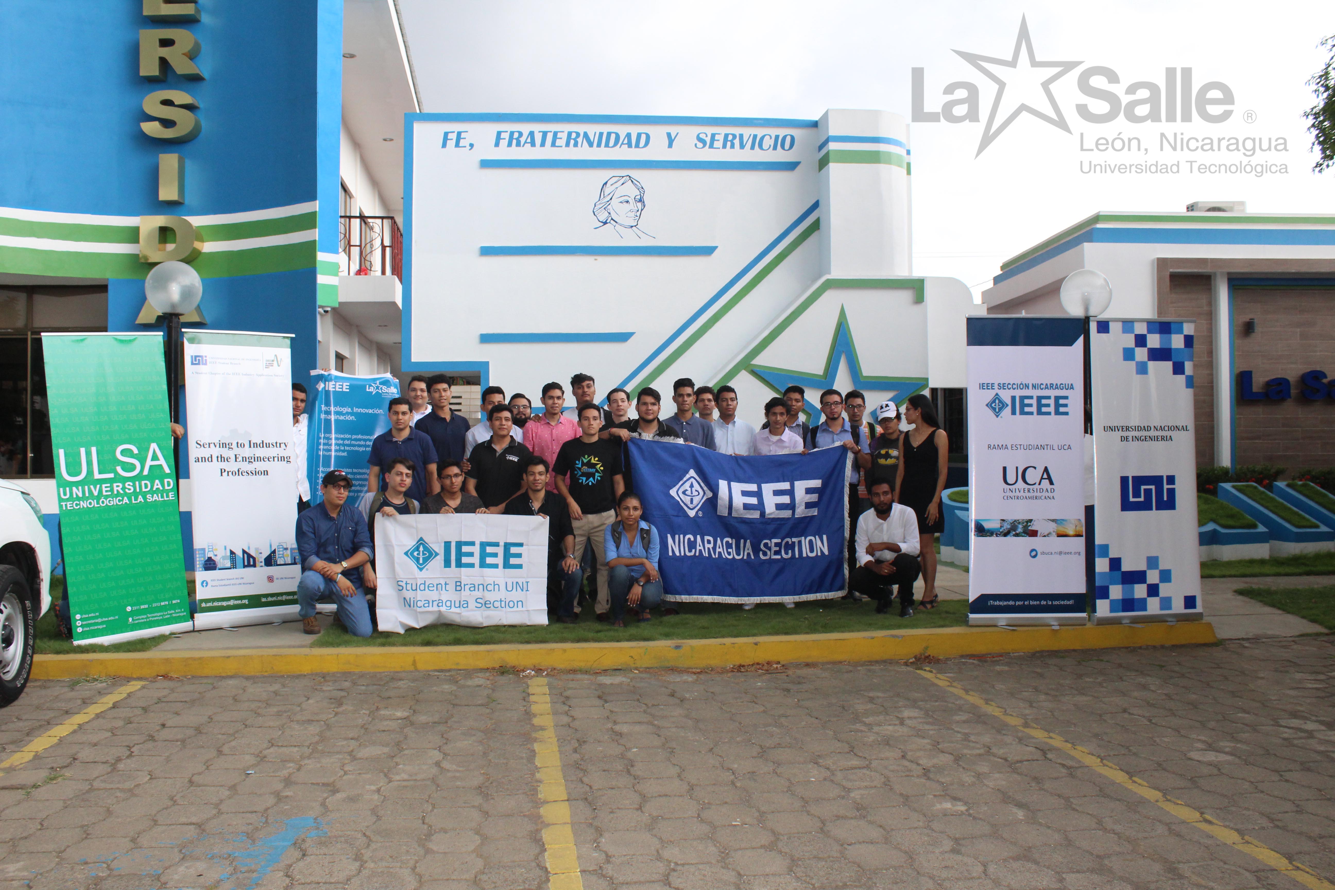 En los laboratorios fueron recibidos por estudiantes miembros de la Rama de ULSA, así como por docentes para compartir las características de funcionamiento, capacidades, aplicación y utilidad de los diferentes equipos, herramientas y medios didáctico de cada laboratorio. Para finalizar con la visita se realizó la toma de fotografía grupal en la que participaron las representaciones de las Ramas Estudiantiles IEEE de la Sección Nicaragua, aprovechando el espacio para preparar los medios publicitarios para celebración del evento CONESCAPAN que el próximo año se realizará en Nicaragua. |