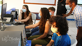 La comunidad educativa de la Universidad Tecnológica La Salle recibió este 14 de junio la agradable visita de un grupo de jóvenes estudiantes norteamericanos miembros de la ONG Amigos de las Américas, quienes fueron recibidos con una charla sobre la vida universitaria en ULSA que les dio la oportunidad de conocer sobre su misión y visión, las distintas carreras que cursan nuestros estudiantes y los principales avances que ha tenido en los últimos años. La charla continuó con una presentación sobre Nicaragua y de sus características por tener recursos energéticos diversos y en abundancia, los cuales son recursos naturales que gozan de un alto potencial para la explotación de energía renovable, ya sea hidroeléctrica, geotérmica, eólica, solar y biomasa. Para finalizar la primera etapa de la visita se presentó un estudio de factibilidad técnica para el almacenamiento y traslado de biogás, realizado por el Centro de Investigación e Innovación para el Desarrollo Tecnológico de Energías Alternativas (CIDTEA) de ULSA.