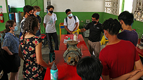 En la segunda etapa de la visita, el grupo de estudiantes se dividió en dos; el primer grupo fue trasladado al laboratorio Ecolab donde pudieron realizar prácticas en simulador solar y eólico, analizar la transferencia de energía entre sistemas híbridos de energía renovable y la red eléctrica, para cubrir ciertas demandas de potencia. El segundo grupo fue trasladado al CIDTEA, donde realizaron prácticas en la obtención y producción de biogás a partir de la descomposición de la materia orgánica y de biodiesel a partir de los aceites vegetales de desecho, también conocieron las ventajas y los beneficios que nos brinda el empleo de estos dos biocombustibles.