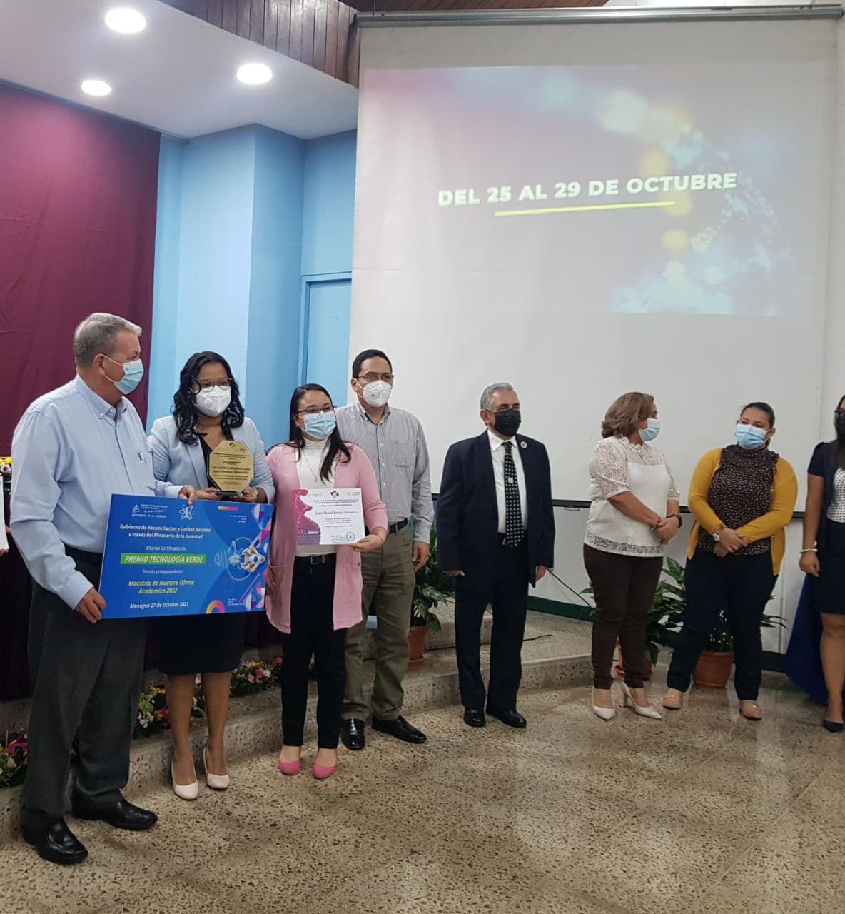 En el marco del cierre de la Jornada Nacional de Ciencia, Tecnología, Innovación y Emprendimiento 2021 y la culminación de la Semana Nacional de la Ciencia, el Consejo Nicaragüense de Ciencia y Tecnología (CONICYT) se celebró este 28 de octubre el acto de premiación a los ganadores de las diferentes convocatorias relacionados con temáticas que tienen que ver con la tecnología, innovación y emprendimientos, en el cual la Ing. Brenda Liza Argüello Blanco egresada de la de la carrera de Ingeniería en Mecatrónica y Sistemas de Control de ULSA, resulto ganadora del primer lugar en el concurso "Premio Nacional de Innovación en categoría Tecnología Verde", al presentar el proyecto “Sistema Escalable de Control y Monitoreo para los equipos de climatización implementando IoT”, el cual es un sistema completo llamado CYMA, por sus siglas Control y Monitoreo Automático que se encuentra actualmente en fase de prototipo. Está actividad se realizó en las instalaciones del CONICYT.