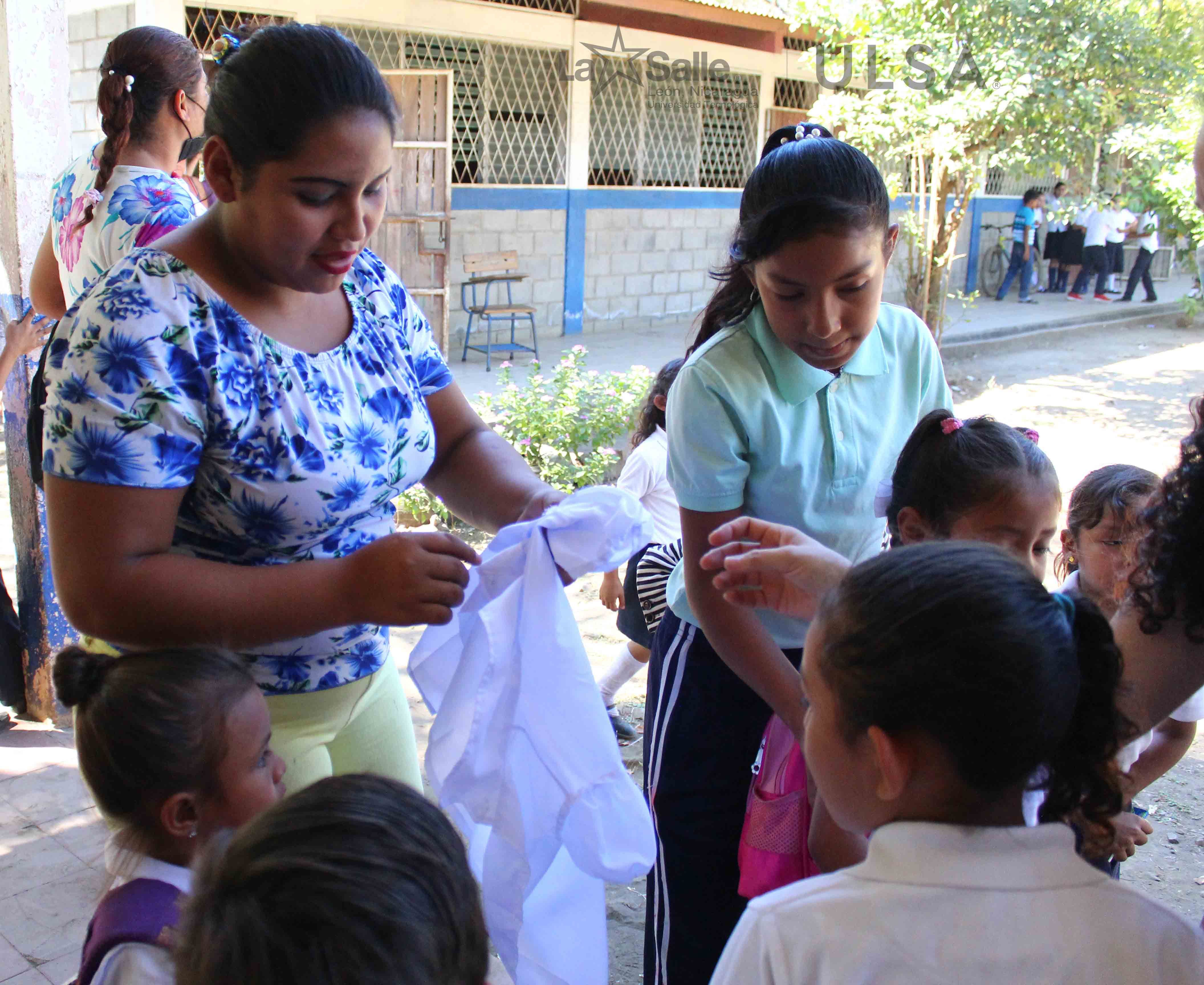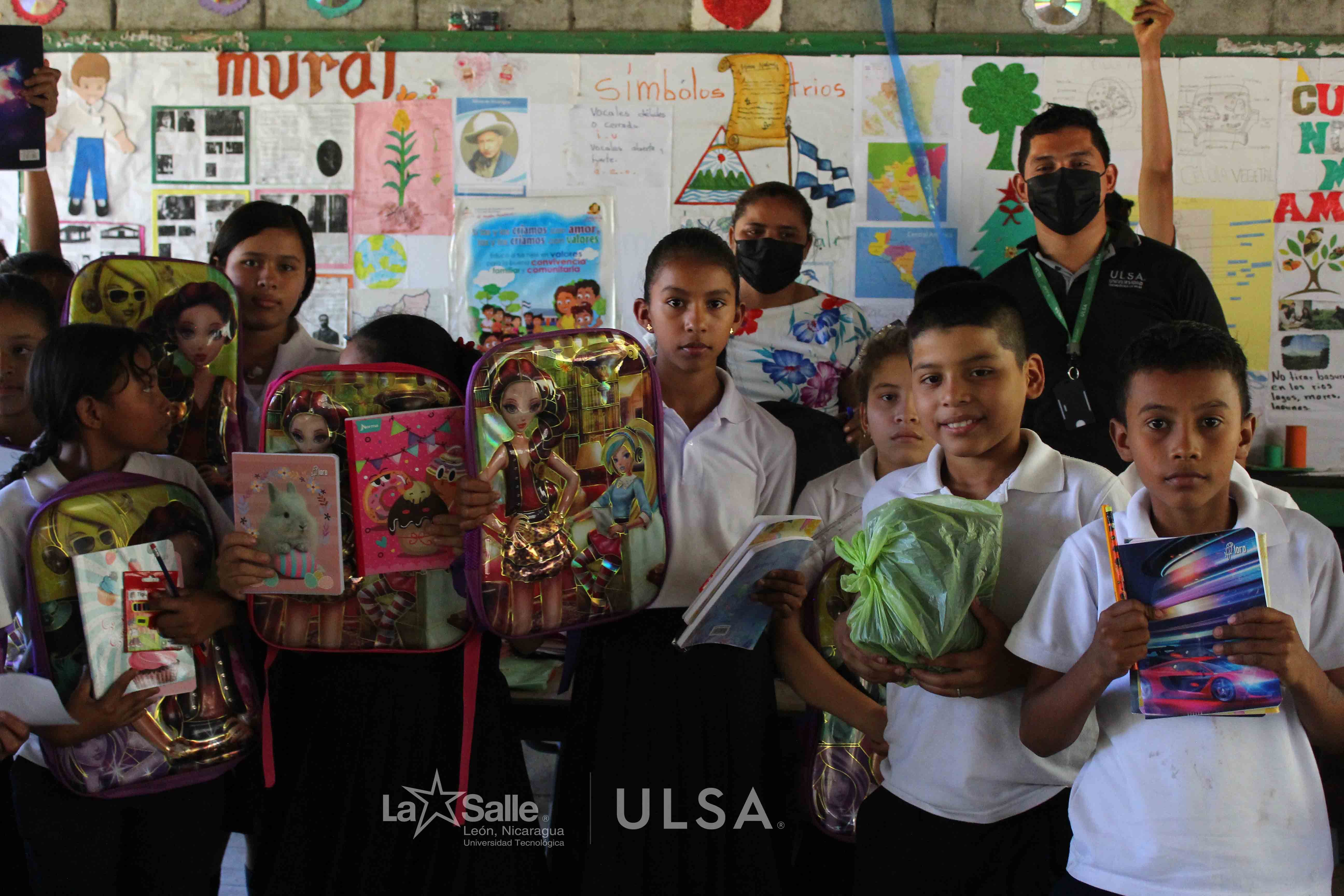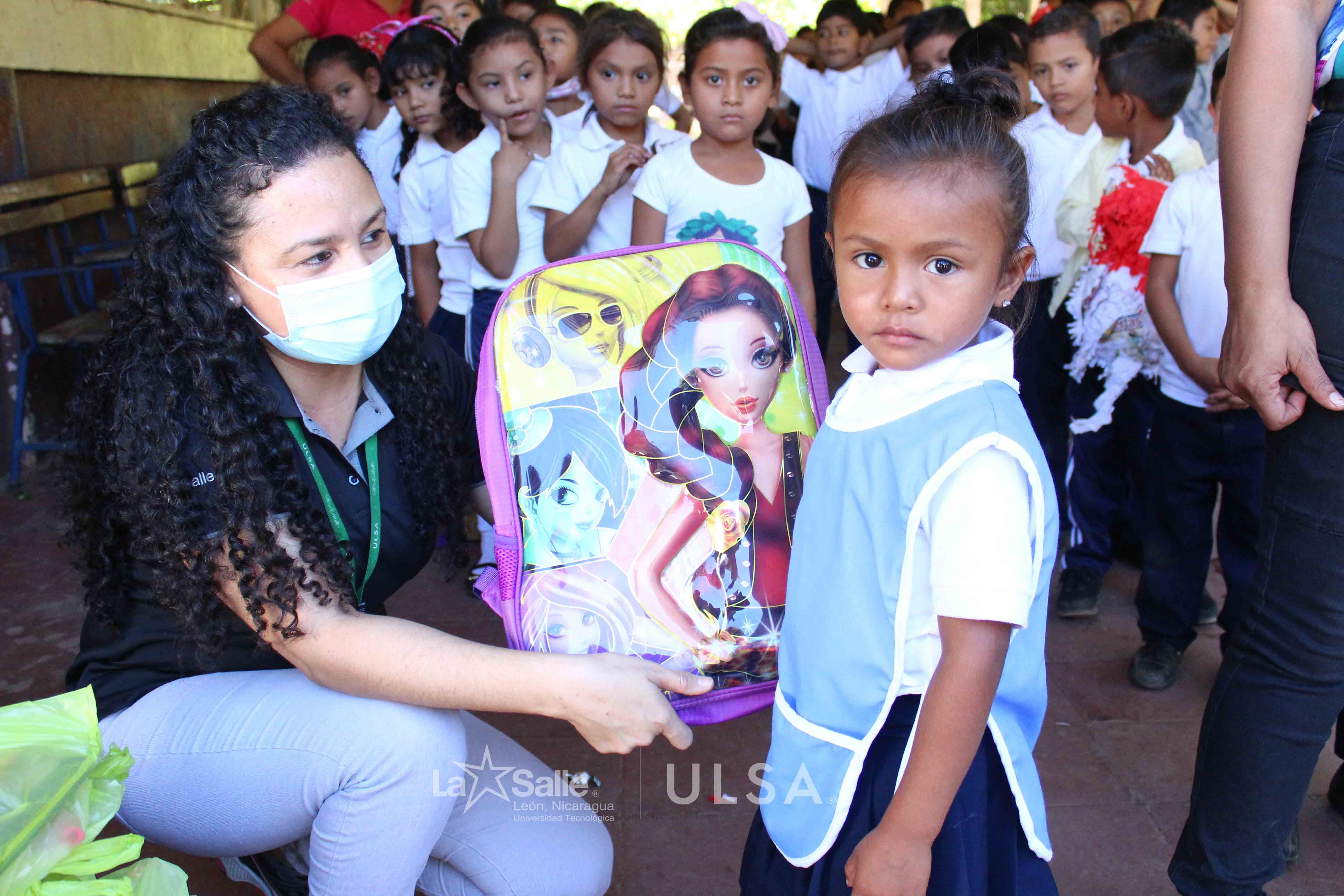 Entrega de útiles escolares en el colegio Roger Morales de Abangasca Sur como parte de la campaña de ULSA "Lasallistas comprometidos con la educación".