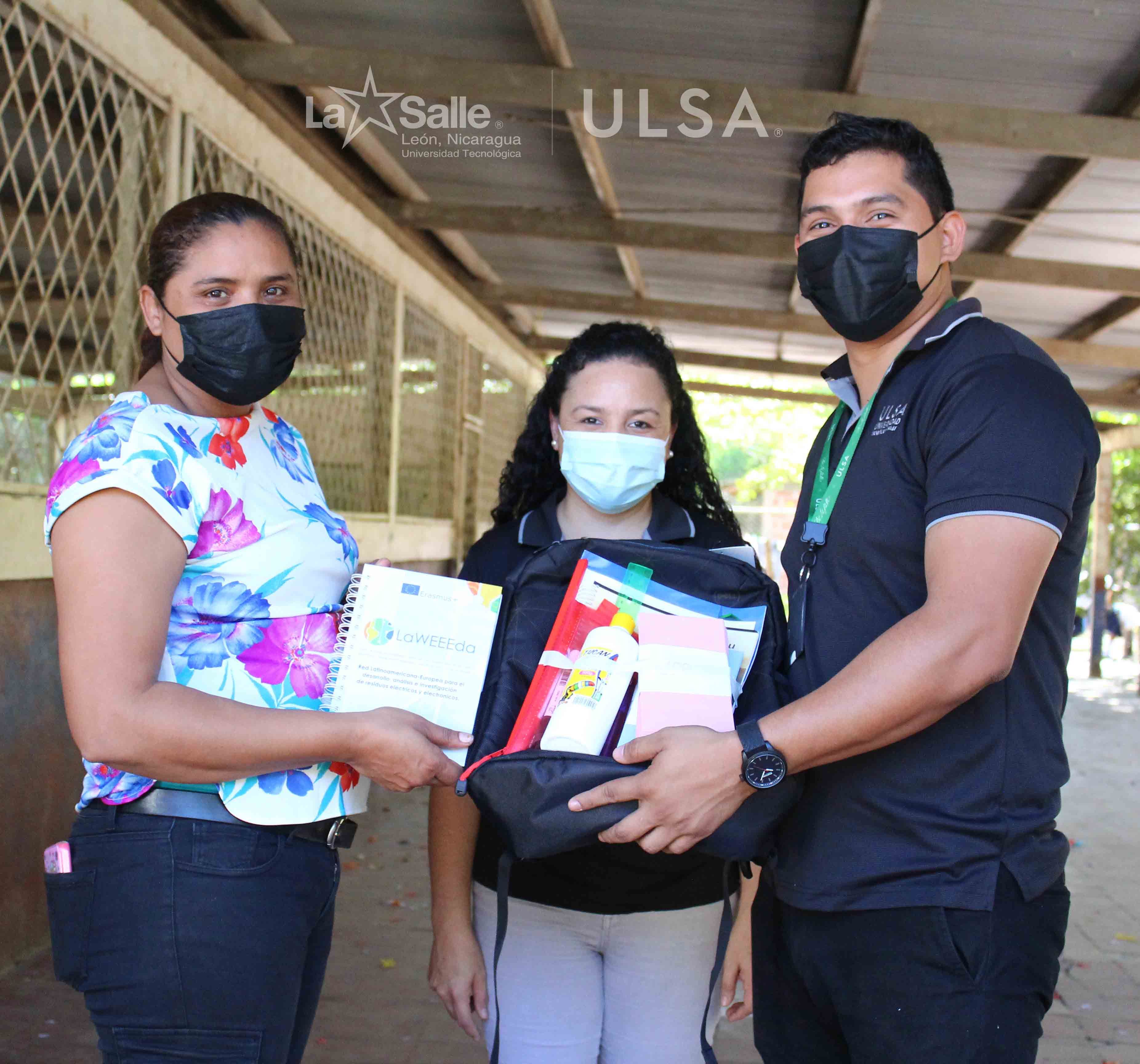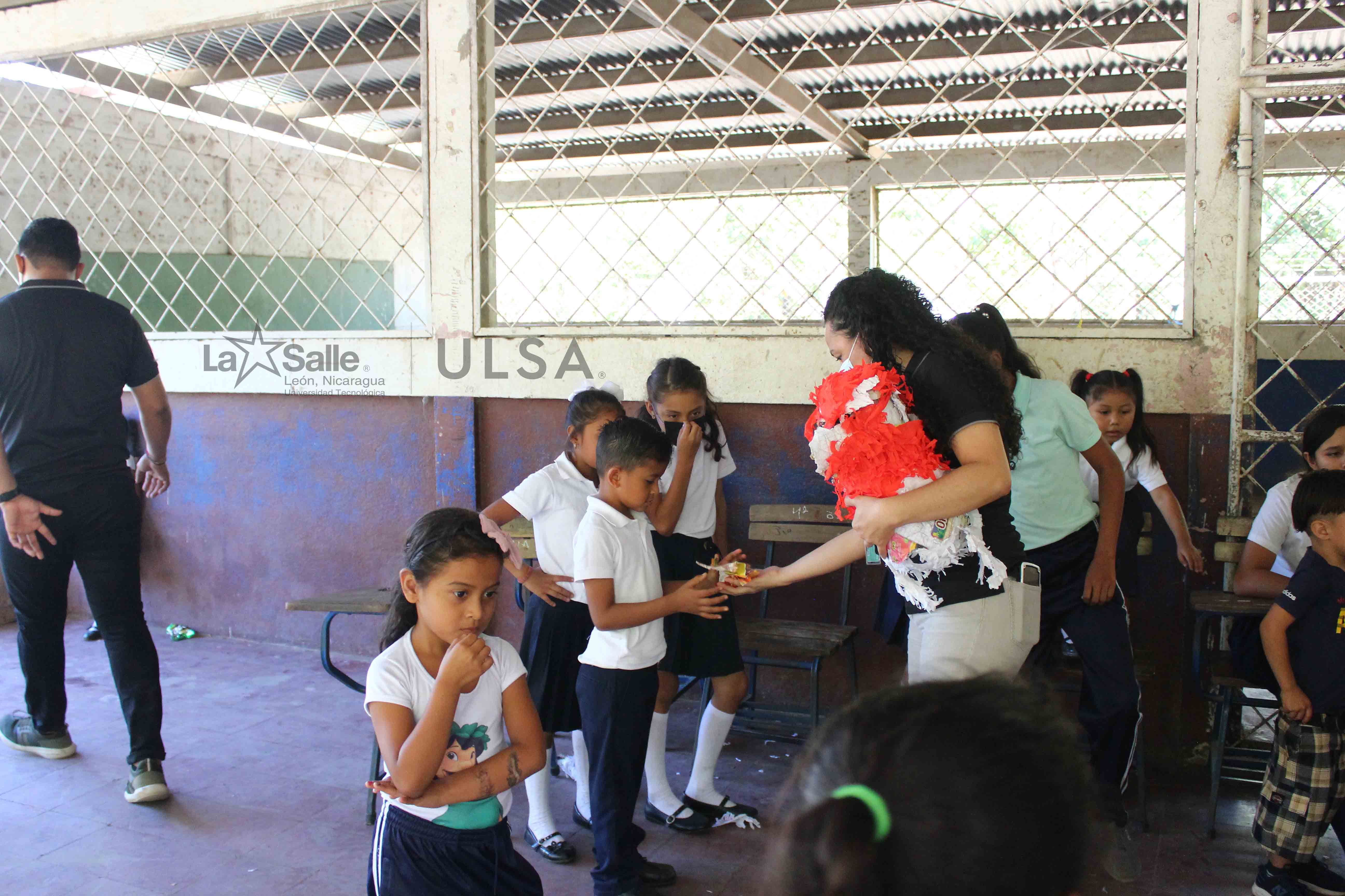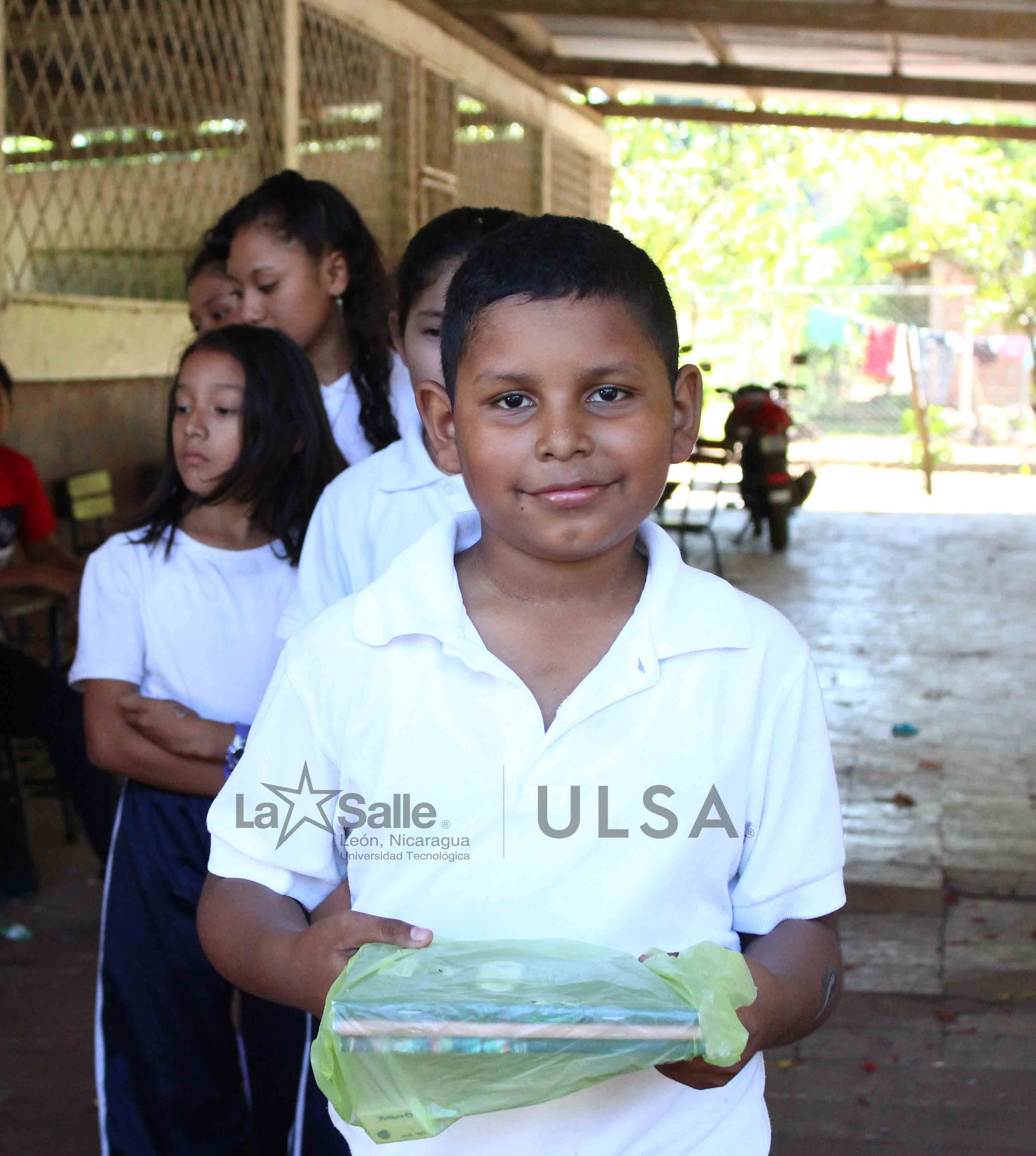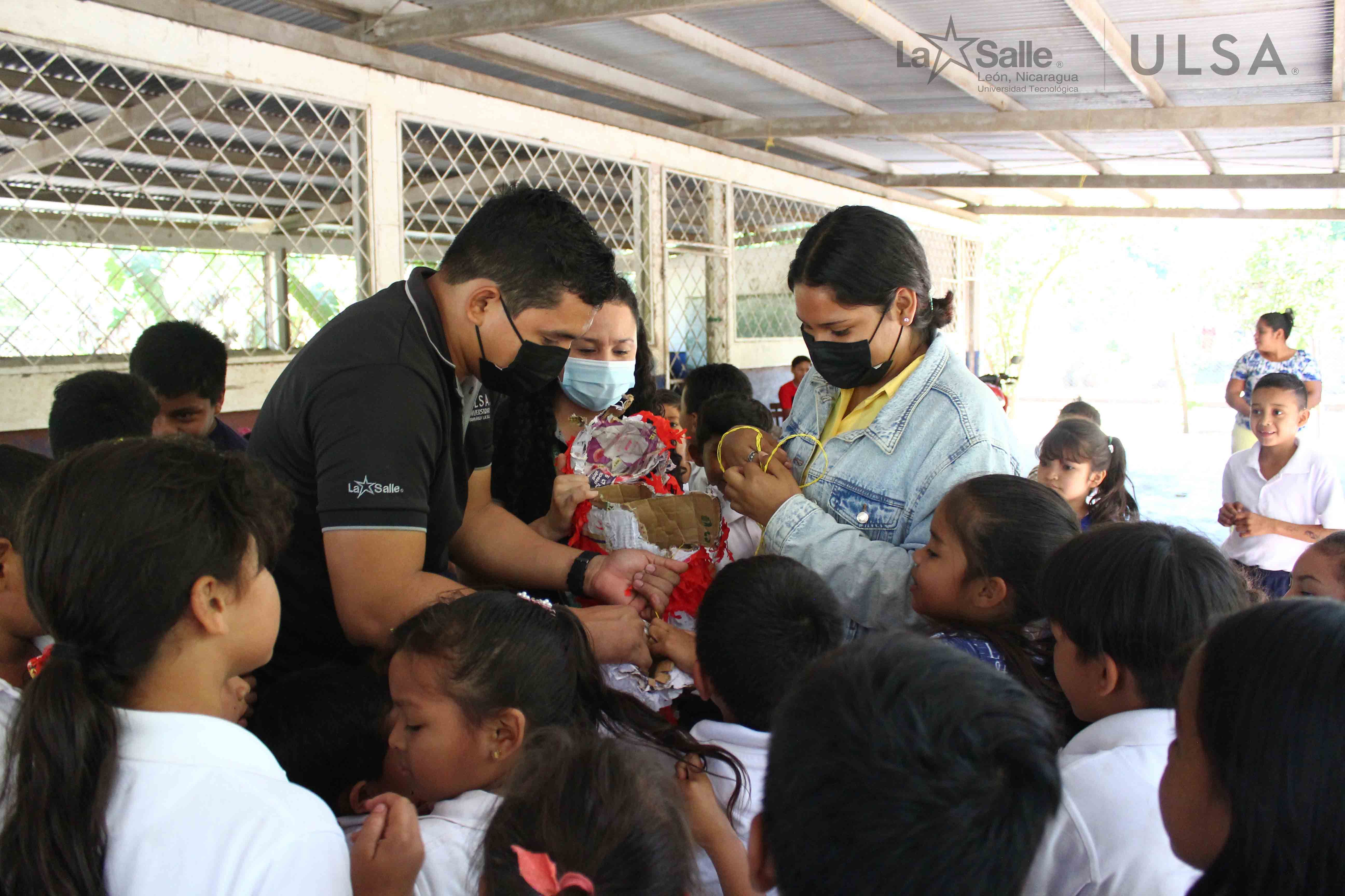 Entrega de útiles escolares en el colegio Roger Morales de Abangasca Sur como parte de la campaña de ULSA "Lasallistas comprometidos con la educación".