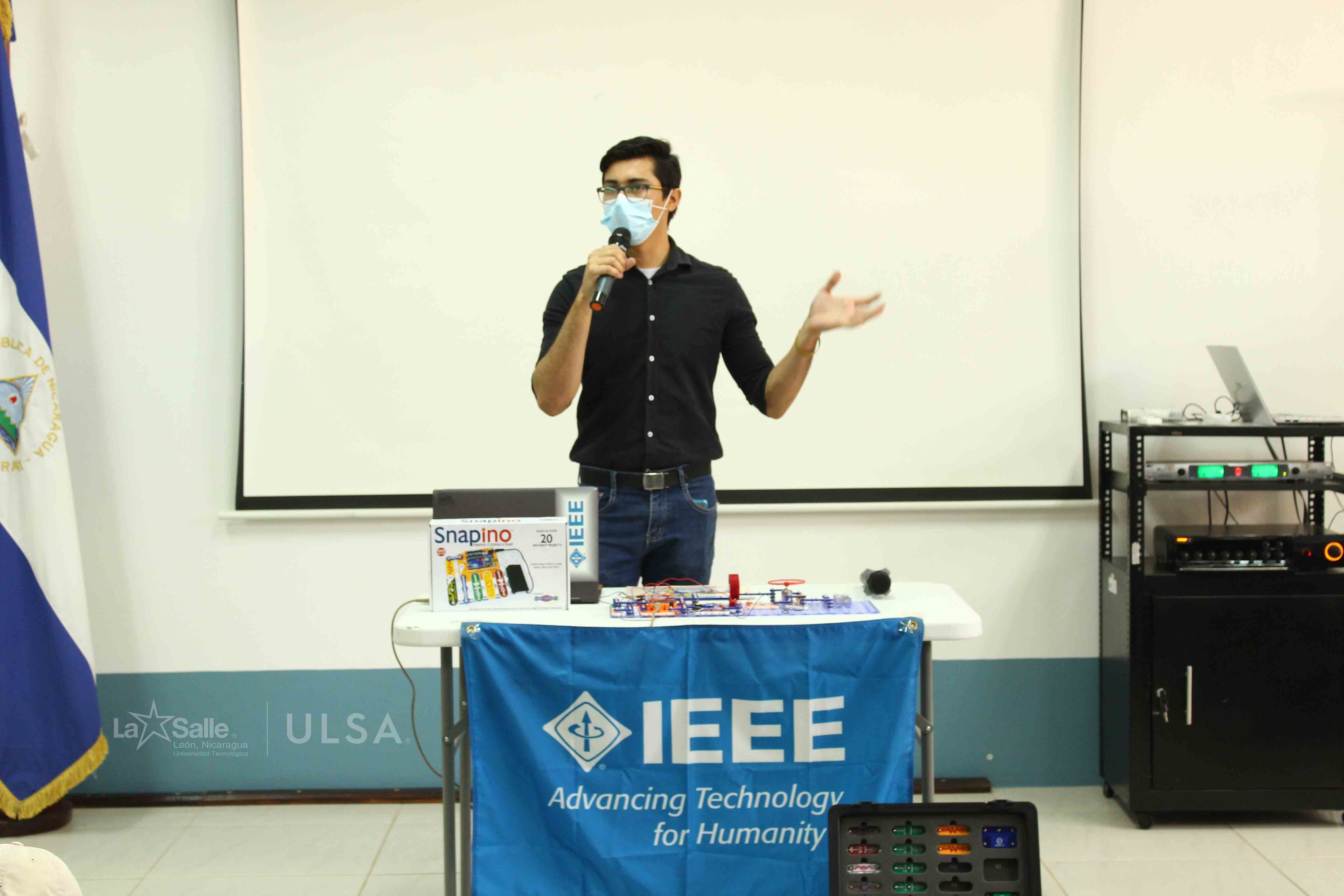 A continuación, el presidente de la Rama IEEE realizó una breve presentación sobre qué es IEEE y cuáles son los principales beneficios de los que pueden disponer los estudiantes cuando son parte de una rama IEEE.