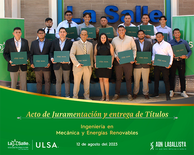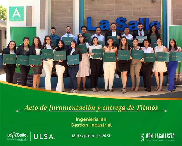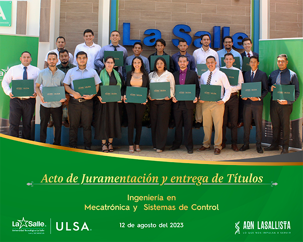 El día sábado 12 de agosto se llevó a cabo en ULSA el acto de Juramentación y Entrega de Títulos a los estudiantes egresados de este año. Las autoridades de ULSA realizaron la juramentación de 68 ingenieros e ingenieras de las carreras de Ingeniería en Gestión Industrial, Ingeniería en Mecánica y Energías Renovables, Ingeniería en Cibernética Electrónica e Ingeniería en Mecatrónica y Sistemas de Control, quienes fueron acompañados por sus familiares y seres queridos.