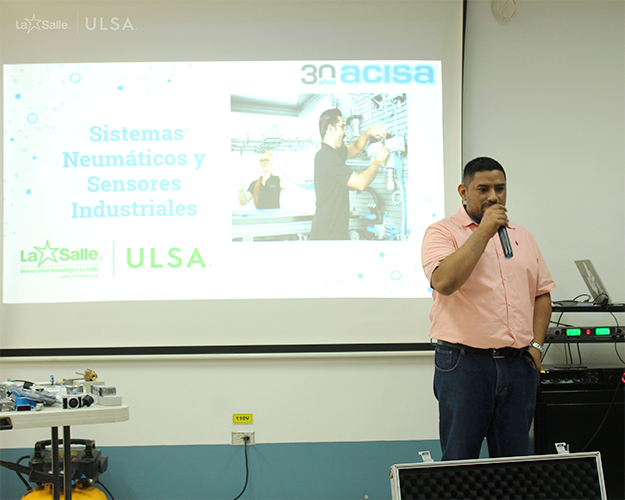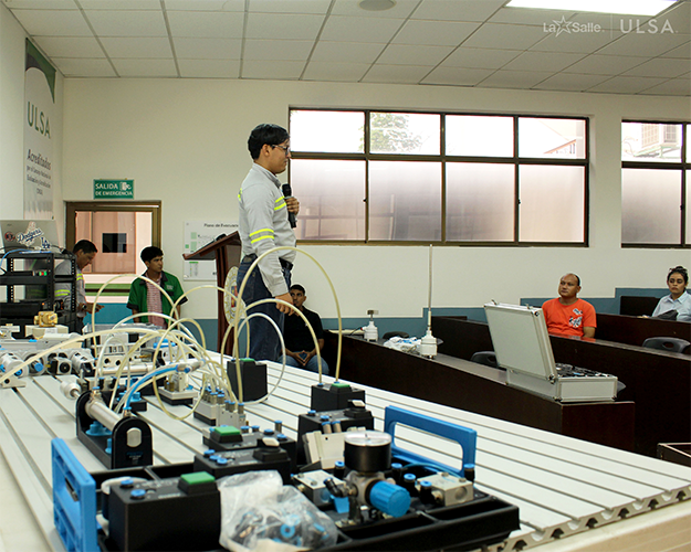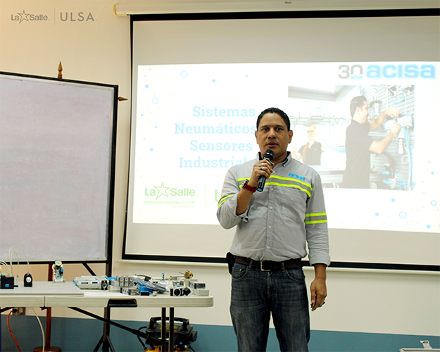 El 08 de septiembre se llevó a cabo en ULSA la Charla “Sistemas Neumáticos y Sensores Industriales” impartida por el Ing. Bayardo Olivas y el Ing. Martin Paredes de la empresa Automatización Industrial. S.A. (ACISA).