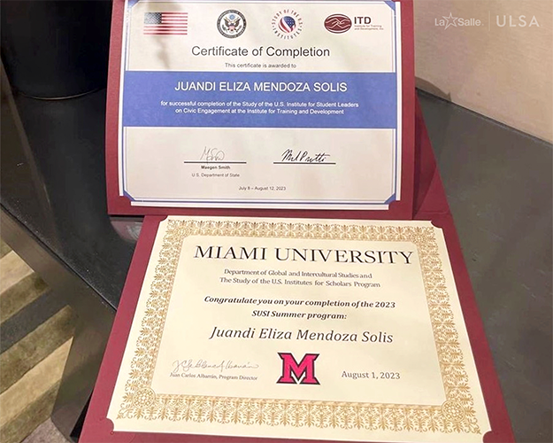 Juandi también expresó su gratitud hacia dos personas clave que la apoyaron en este viaje: el Lic. Emilio Zúñiga y el Lic. Pablo González Guido, ambos de ULSA. "El Lic. Emilio Zúñiga fue quien me motivó a tomar este reto y siempre me brindó consejos y aliento para alcanzar mis metas. El Lic. Pablo González estuvo igualmente atento y me ayudó con cada duda que surgió en mi camino. No podría haber llegado hasta aquí sin su apoyo", destacó.