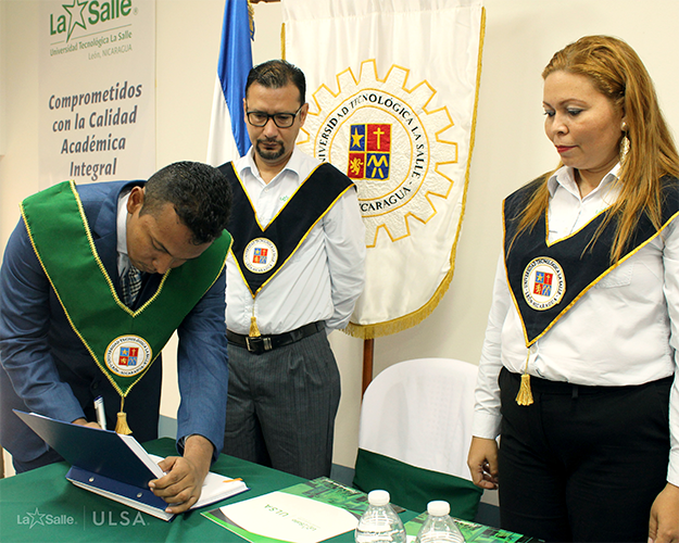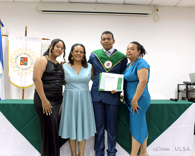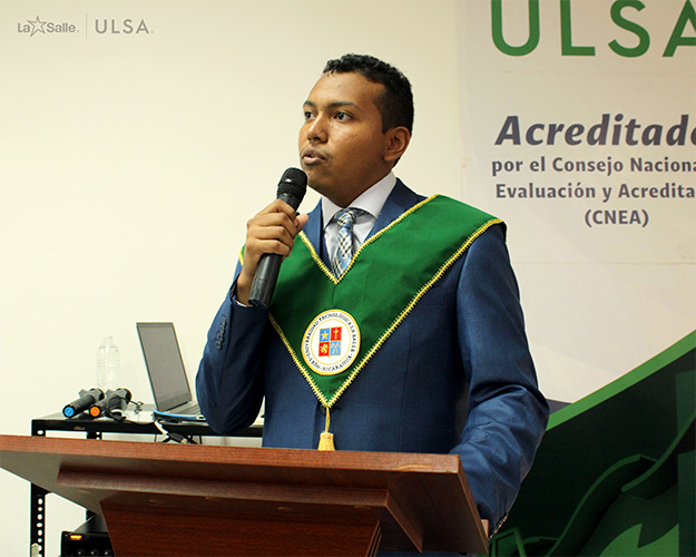 El día martes 3 de octubre se realizó en la Universidad Tecnológica La Salle el acto de la 5ta. Graduación por Excelencia desde la fundación de ULSA, está vez el Ingeniero Williams Reyner de Jesús Castillo Vázquez, primer egresado de la carrera de Ingeniería Eléctrica con Énfasis en Eficiencia Energética, quien cumplió con todos los requisitos y procedimientos según lo establecido por la universidad, aprobando la Modalidad de Graduación por Excelencia con mención honorífica: Magna Cum Laude, por haber obtenido un promedio ponderado global de 95.54 puntos, siendo este promedio el más alto entre los estudiantes de su cohorte y su plan.