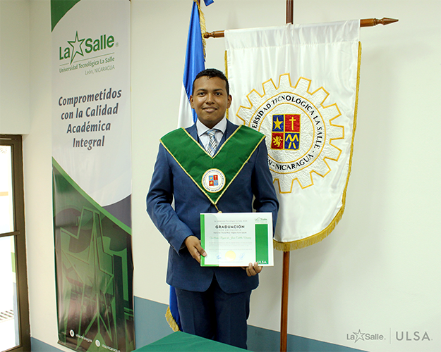 “... Como egresado de la carrera "Ingeniería Eléctrica con énfasis en Eficiencia Energética", seguiré demostrando ante la sociedad nicaragüense la calidad de profesionales éticos, humanos y lasallistas que egresan de este ilustre centro de estudios superiores con la calidad detrás de cada materia ofertada y los valores que nos caracterizan como lasallistas.