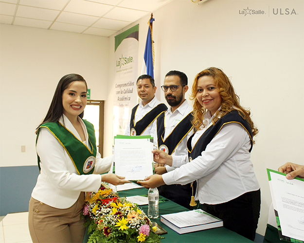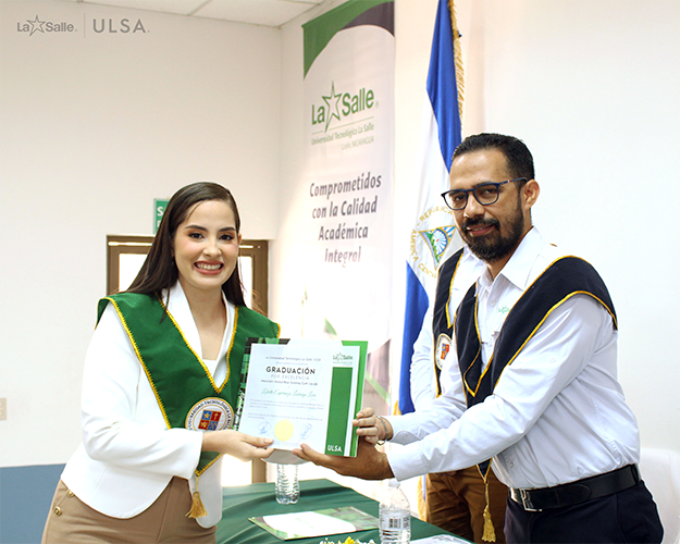 El día viernes 10 de noviembre se realizó en la Universidad Tecnológica La Salle el acto de la 6ta. Graduación por Excelencia desde la fundación de ULSA, está vez la Licenciada Lolieth Esperanza Loaisiga Lara, egresada de la primera generación de la carrera de Licenciatura Administrativa con énfasis en Finanzas, quien cumplió con todos los requisitos y procedimientos según lo establecido por la universidad, aprobando la Modalidad de Graduación por Excelencia con mención honorífica: Summa Cum Laude, por haber obtenido un promedio ponderado global de 98.07 puntos, siendo este promedio el más alto entre los estudiantes de su cohorte y su plan.