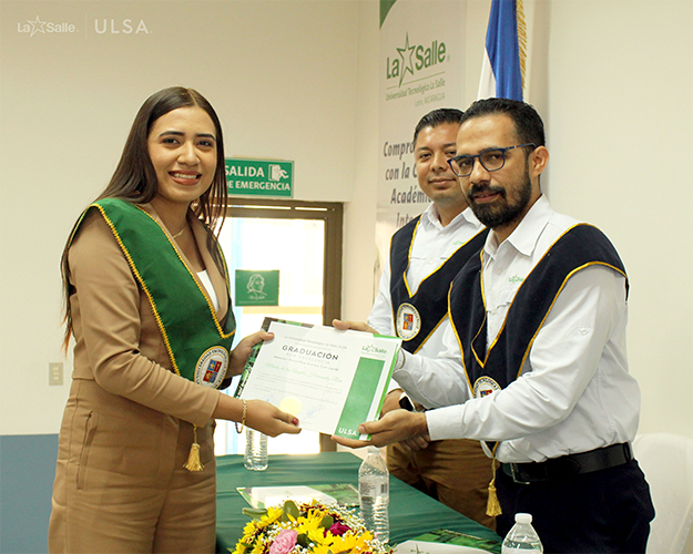 El día viernes 10 de noviembre se realizó en la Universidad Tecnológica La Salle el acto de la 6ta. Graduación por Excelencia desde la fundación de ULSA, está vez la Licenciada Marla de los Ángeles Hernández Roa, egresada de la primera generación de la carrera de Licenciatura Administrativa con énfasis en Finanzas, quien cumplió con todos los requisitos y procedimientos según lo establecido por la universidad, aprobando la Modalidad de Graduación por Excelencia con mención honorífica: Summa Cum Laude, por haber obtenido un promedio ponderado global de 97.73 puntos, siendo este promedio el más alto entre los estudiantes de su cohorte y su plan.