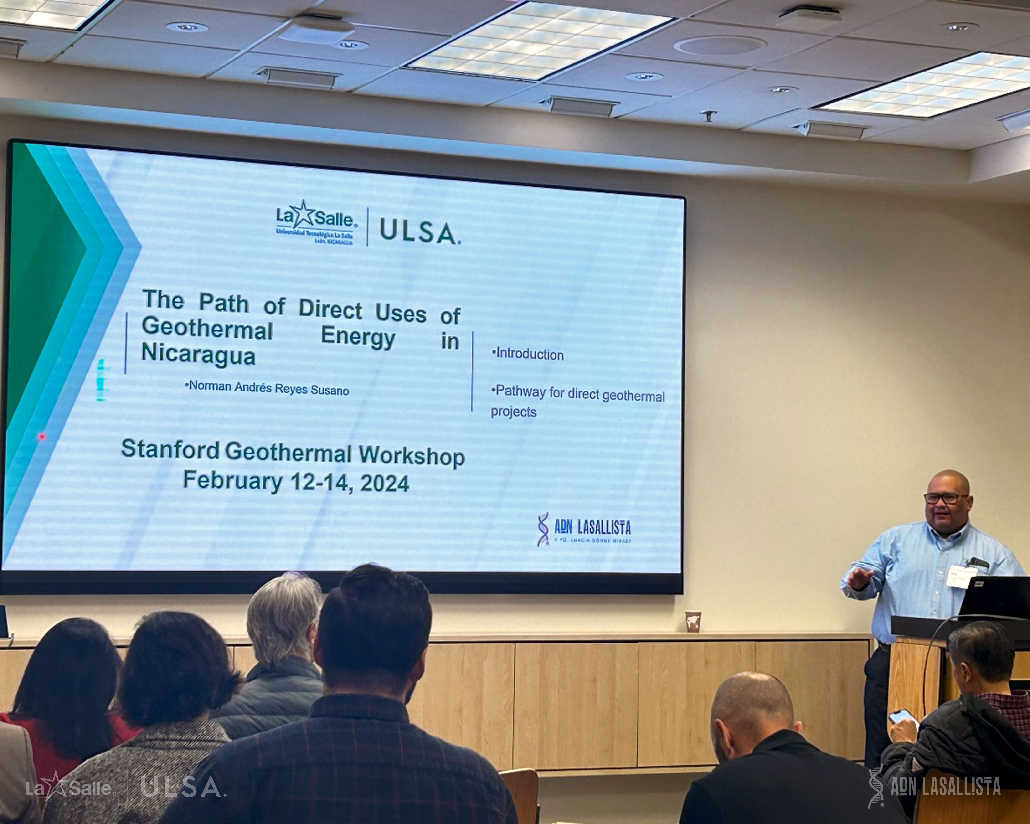 En el marco del 49º Taller Geotérmico de Stanford, un evento de renombre internacional que congrega a expertos y académicos en el campo de la energía geotérmica, se presentó un estudio innovador que arroja luz sobre el potencial de este recurso en Nicaragua. El Lic. Norman Reyes Susano, en representación de la Universidad Tecnológica La Salle, ULSA, tuvo el honor de exponer el paper titulado “The Path of Direct Uses of Geothermal Energy in Nicaragua ” (La Ruta de los Usos Directos de la Geotermia en Nicaragua), ofreciendo un análisis detallado sobre cómo aprovechar este recurso natural de manera directa para beneficio del país centroamericano.