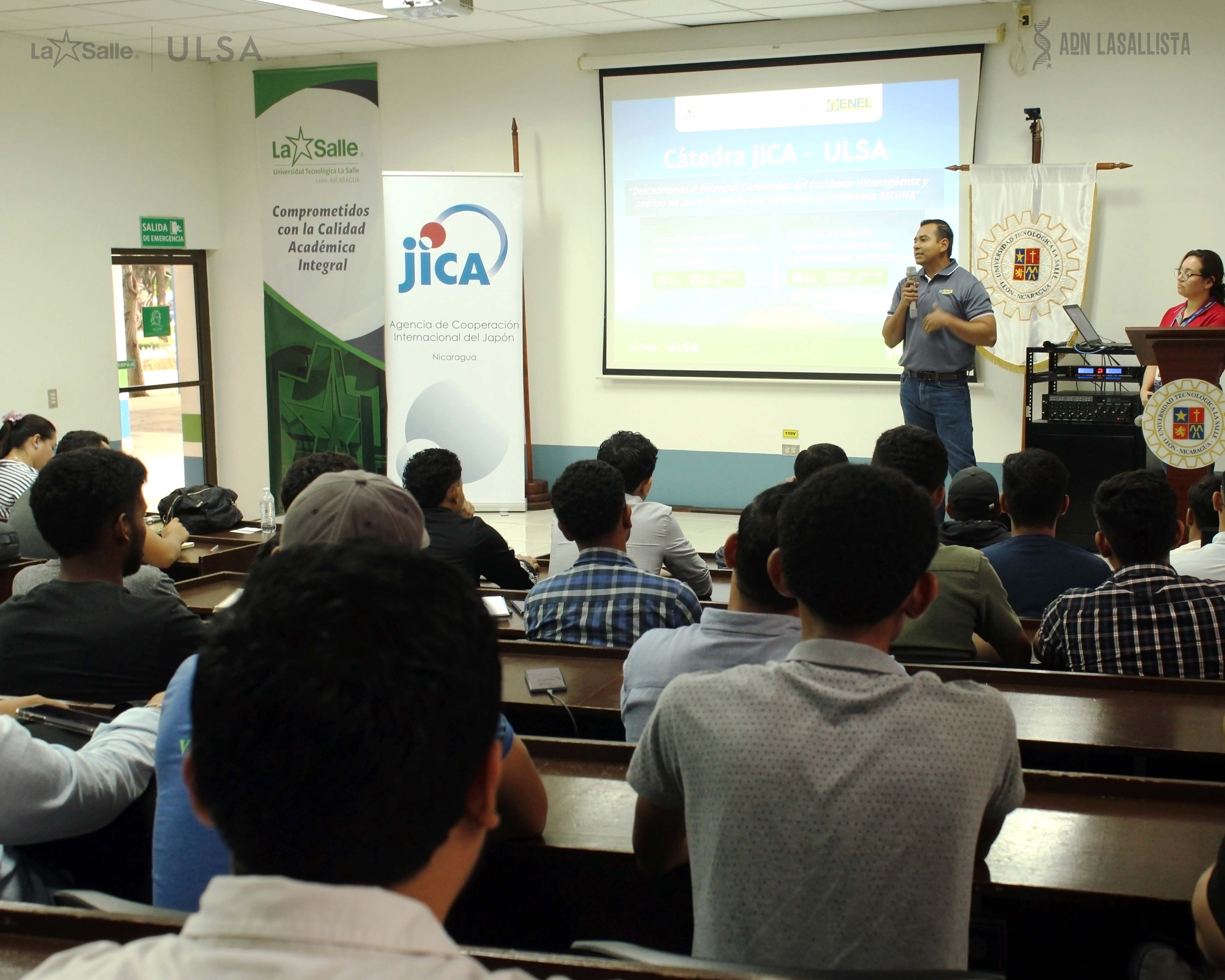 Durante los días 12 y 18 de junio, se llevaron a cabo las sesiones inaugurales del programa de Cátedras JICA-ULSA bajo el título "Descubriendo el Potencial Geotérmico del Occidente Nicaragüense y Análisis de Casos de Estudio con Egresados del Programa KIZUNA". Organizado gracias a la colaboración entre la Agencia de Cooperación Internacional del Japón, JICA, y la Empresa Nicaragüense de Electricidad, ENEL, este evento educativo destacó por profundizar en el vasto potencial de la geotermia en Nicaragua. Expertos de la Dirección de Estudios Geotérmicos de ENEL impartieron conocimientos fundamentales sobre esta forma de energía renovable, presentando avances significativos y oportunidades estratégicas para el desarrollo energético del país.