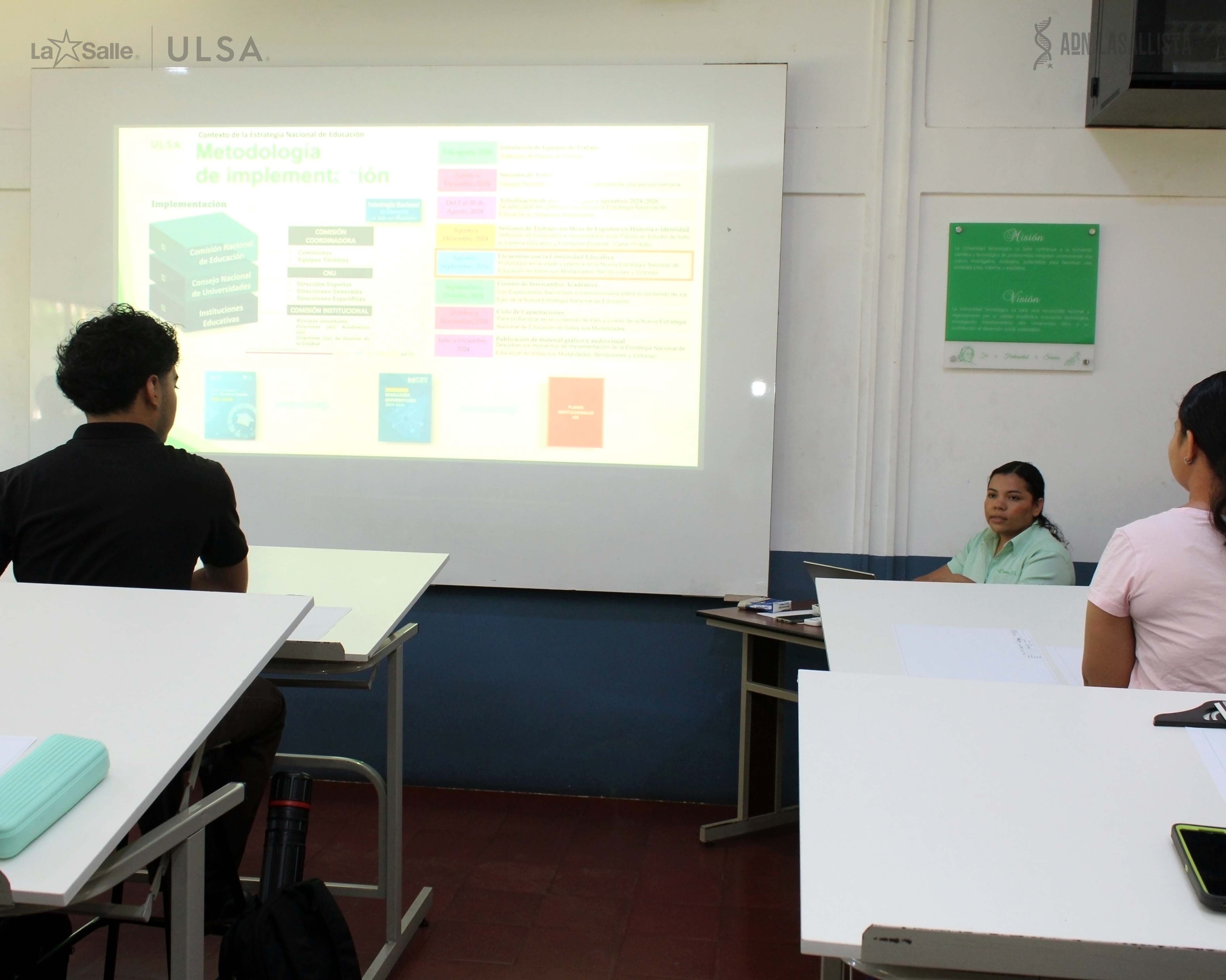 Durante estos encuentros, los docentes y coordinadores de ULSA compartieron la visión de la Estrategia Nacional de Educación con estudiantes de las diferentes carreras como son: LAF, LCM, IME, IMS e IGI. El objetivo fue valorar los logros educativos de Nicaragua y fomentar una comprensión profunda de cómo esta estrategia contribuirá a la evolución de los aprendizajes para niños, adolescentes, jóvenes y adultos, así como a la atención de la diversidad cultural y étnica del país.
