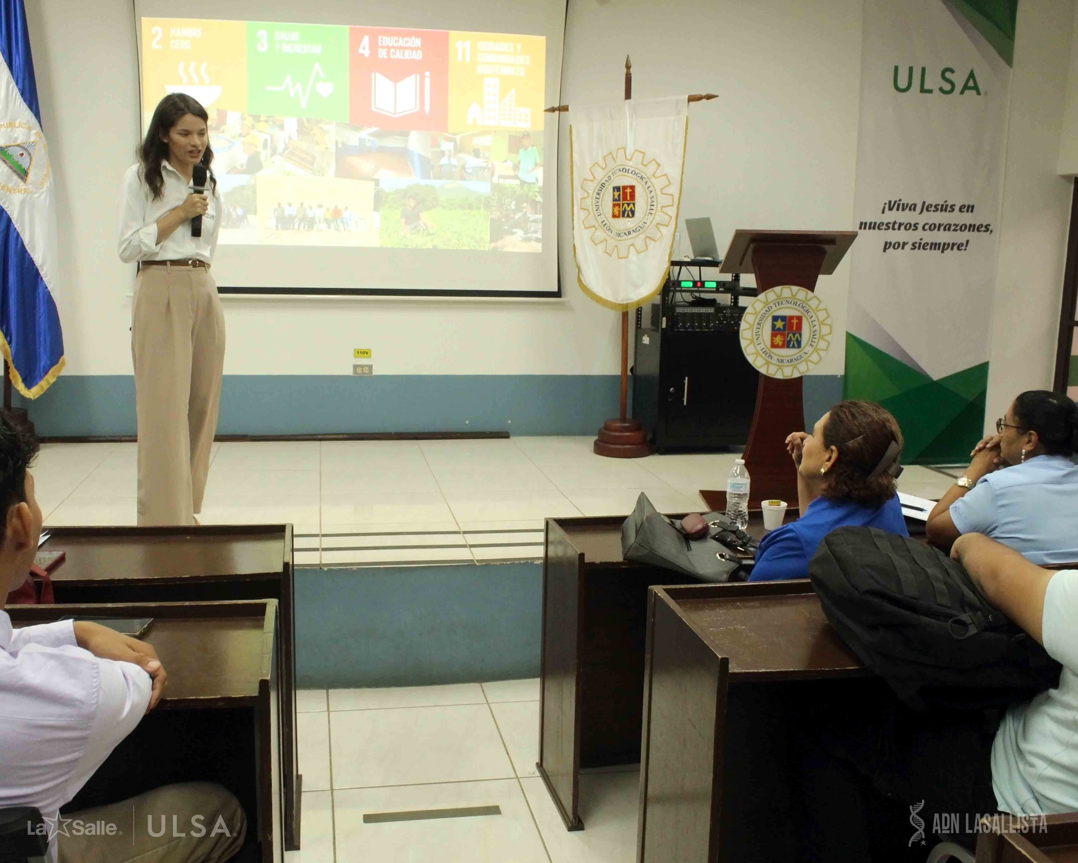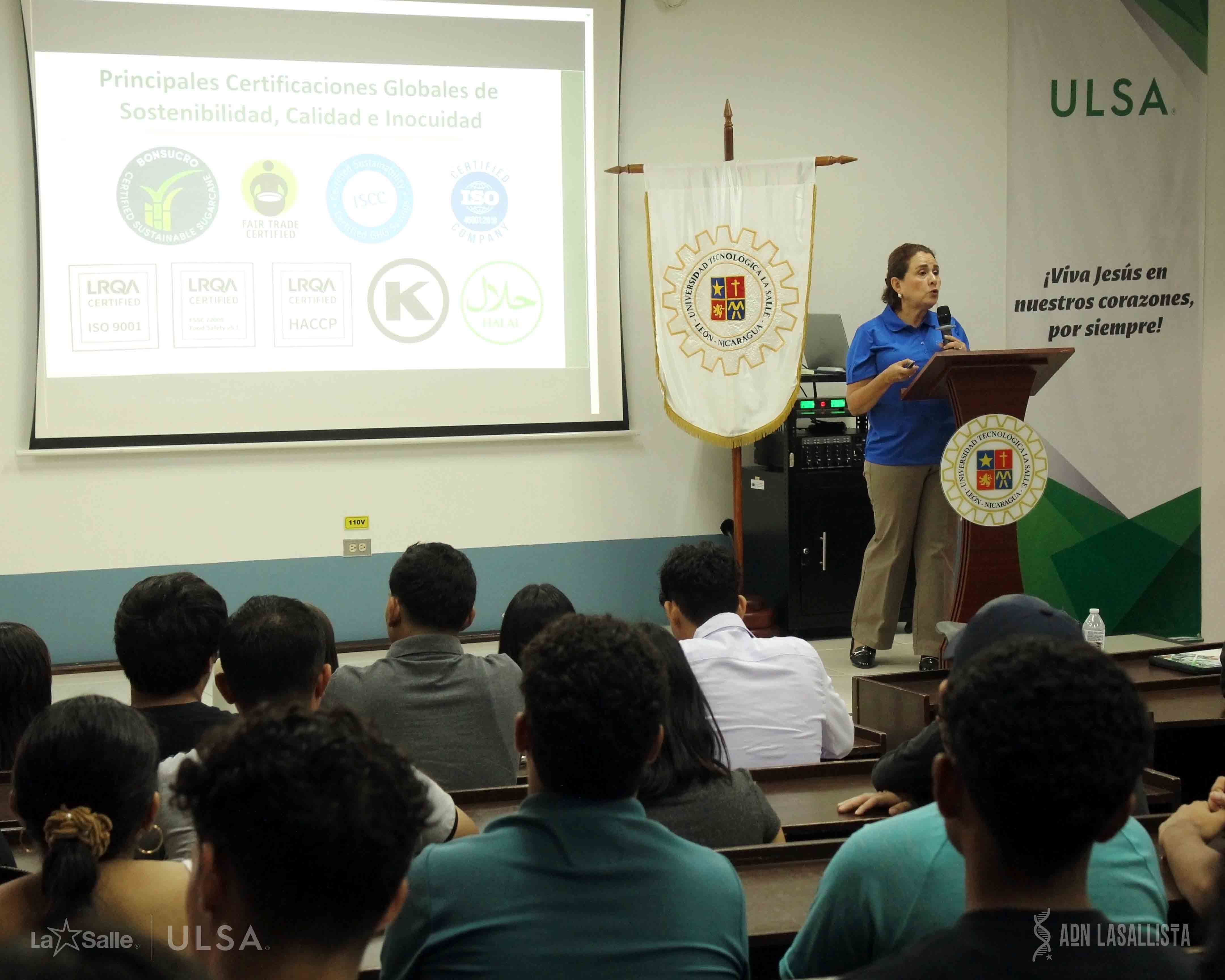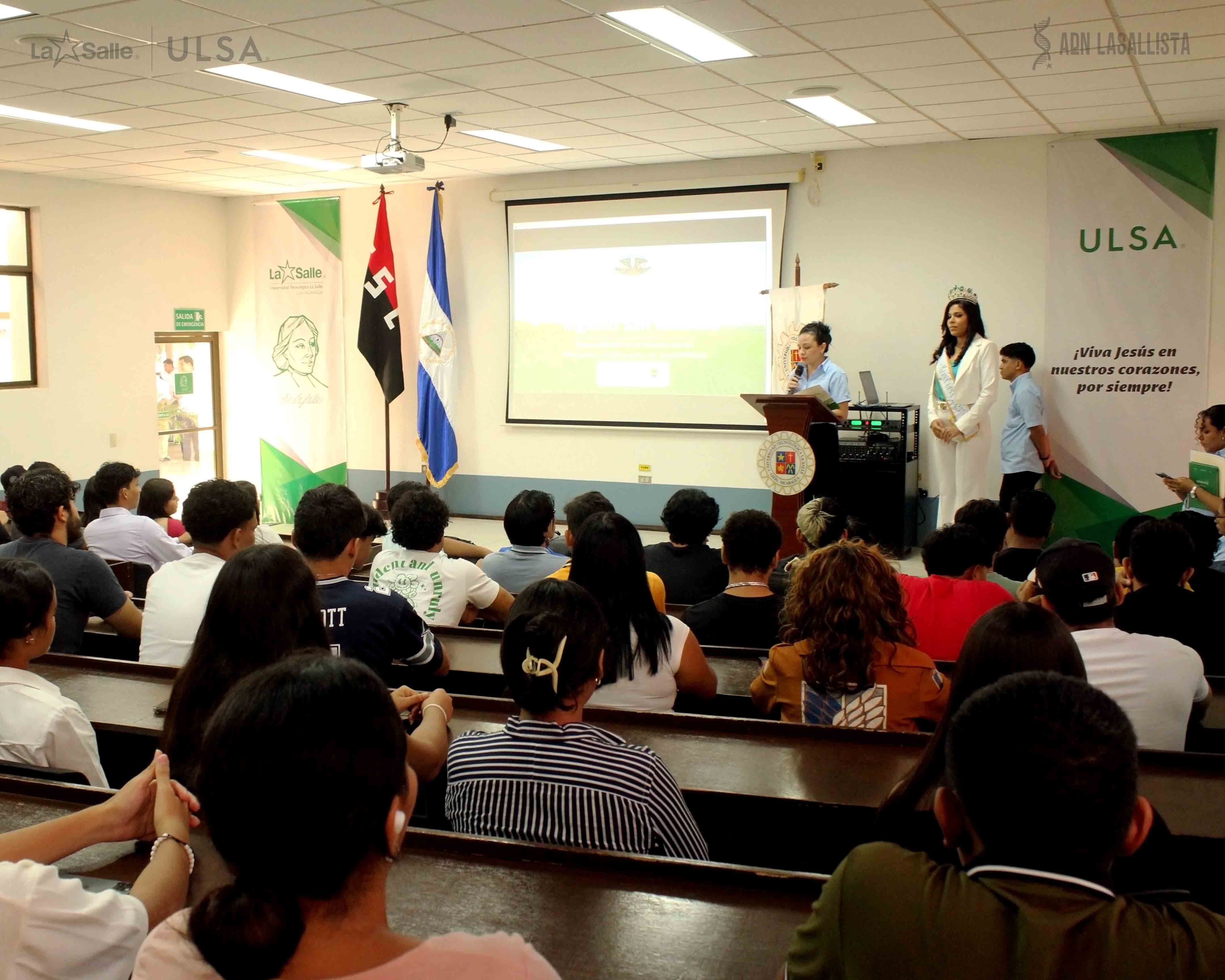 La jornada incluyó dos ponencias magistrales de alto nivel realizadas en el auditorio de la universidad. La Ing. Francis Flores, Ingeniera de Medio Ambiente y Social en Polaris Energy, presentó el tema “Sostenibilidad en la Geotermia (Campo Geotérmico San Jacinto - Tizate)”, destacando cómo esta fuente de energía renovable puede desarrollarse con responsabilidad ambiental. Por su parte, la Ing. Ivette Reyes, Jefa de Gestión Ambiental en Ingenio San Antonio, abordó el tema “Ingenio San Antonio: Primer Ingenio en el Mundo con las Principales Certificaciones de Sostenibilidad”, compartiendo la experiencia de la empresa en la implementación de estándares ambientales internacionales. Ambas expositoras ofrecieron casos prácticos que demostraron cómo las empresas pueden aplicar estrategias sostenibles para reducir su impacto ambiental y generar valor desde la responsabilidad social.