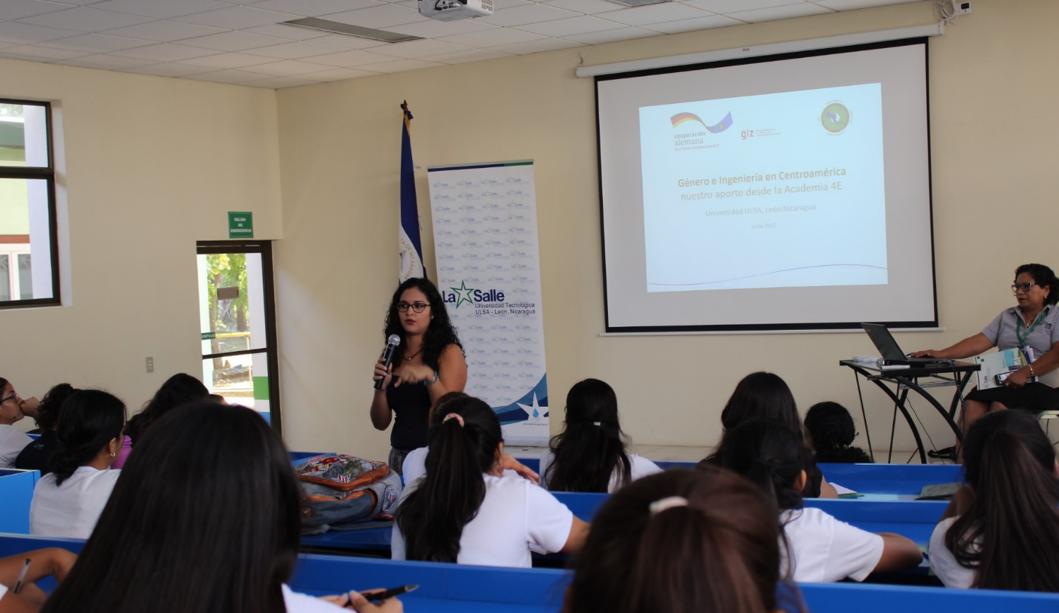 La asistencia al foro fue de 113 jóvenes mujeres de undécimo grado y estudiantes de ingenierías de ULSA. Las conferencias desarrolladas fueron: 1. "Genero e ingeniería en Centro América”, la ponente fue la Lic. Karla Hernández Chanto, Academia 4E-GIZ quien es asesora técnica para Costa Rica y Panamá; 2. Experiencias Ingenieril en la Industria, por la Ing. Eloisa Molina Salmerón, Inspectora del Uso responsable de Energía de INE - Nicaragua; 3. "El empoderamiento femenino", por la Lic. María Teresa Jiménez, Responsable del área de Bienestar estudiantil de ULSA. Además, se compartió la producción del vídeo realizado con la colaboración de la Academia 4E y Universidades de Centroamérica, titulado Mujeres en Ingeniería".