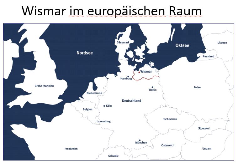 Wismar es una ciudad de a penas 50.000 habitantes, fue fundada antes de 1.000 AC y tuvo su apogeo durante los tiempos de la Liga Hanseatica en los siglos 13 á 15. Las empresas más importantes hoy en día son un astillero, un complejo de compañías que procesan madera, la administración de la ciudad, la Universidad de ciencias aplicadas de Wismar y una fábrica, que produce quesos.